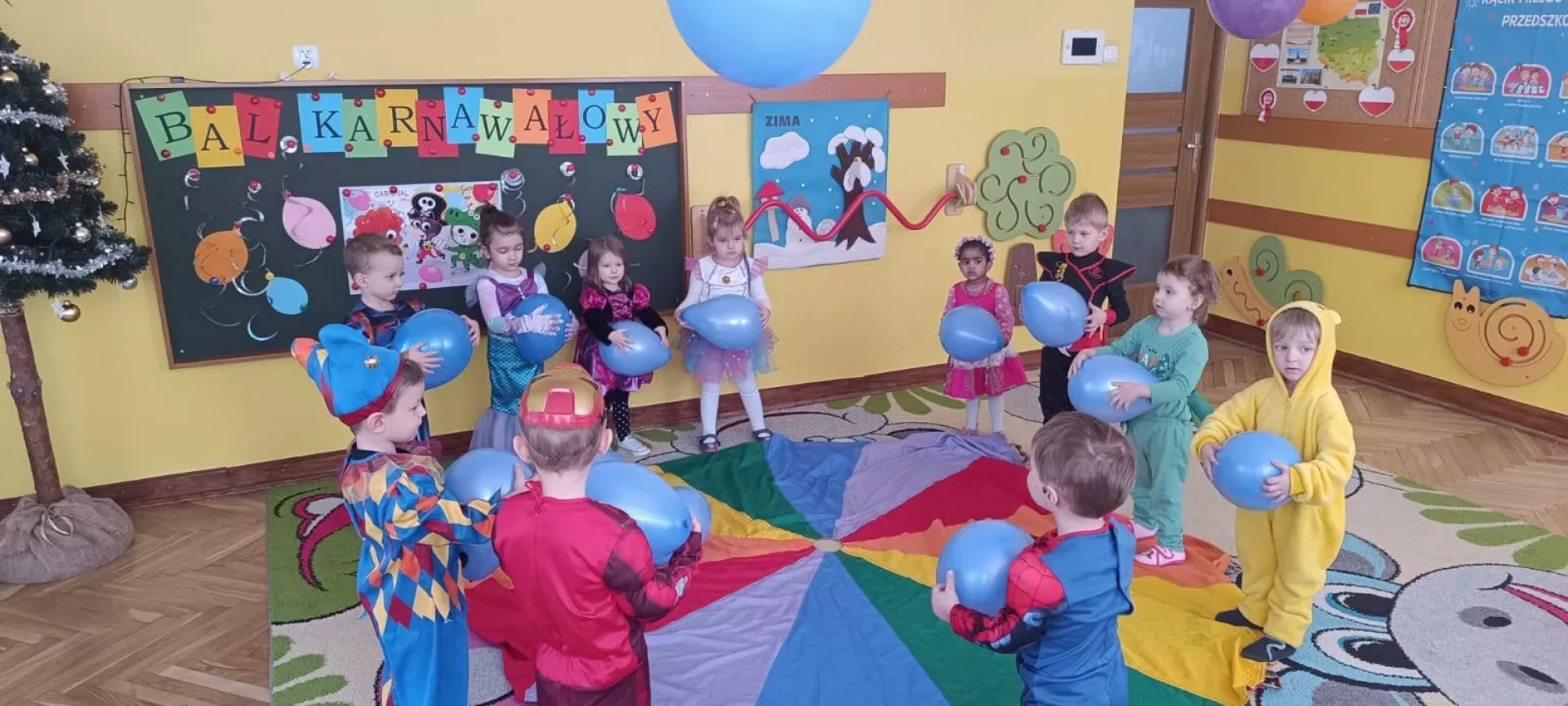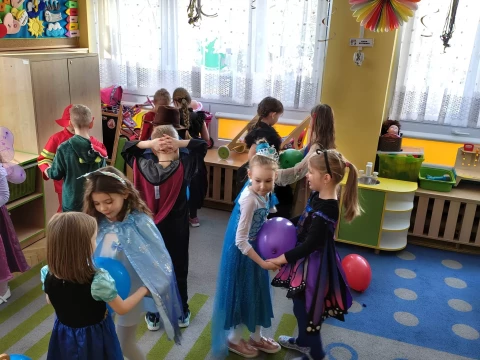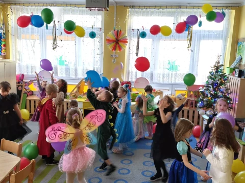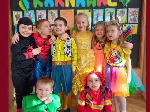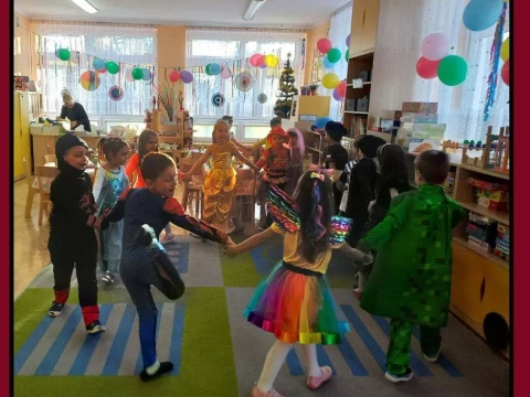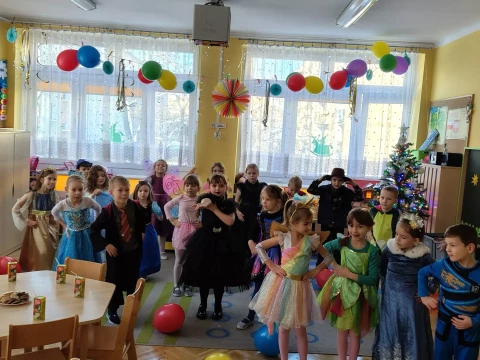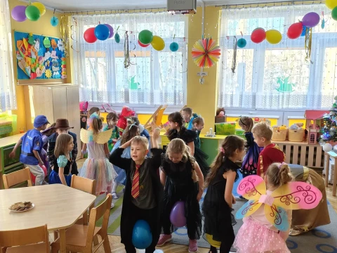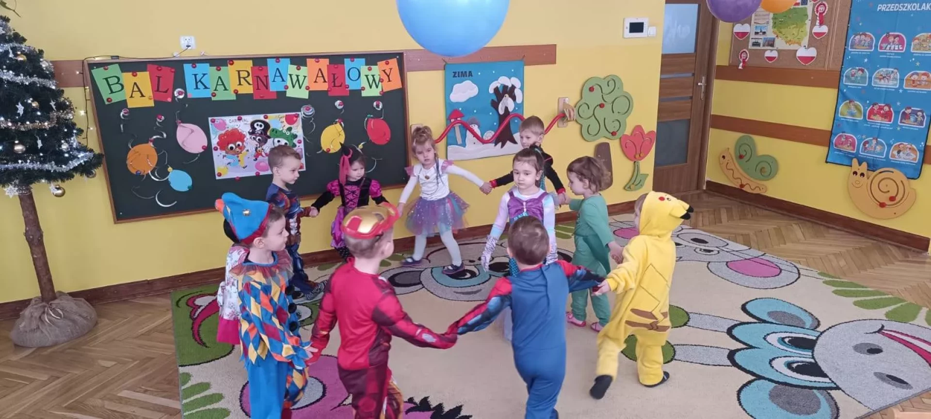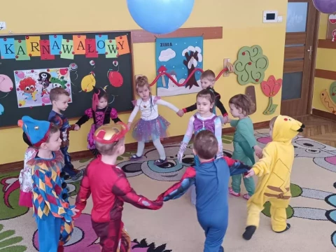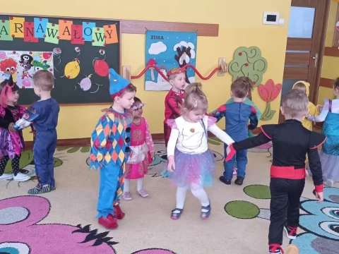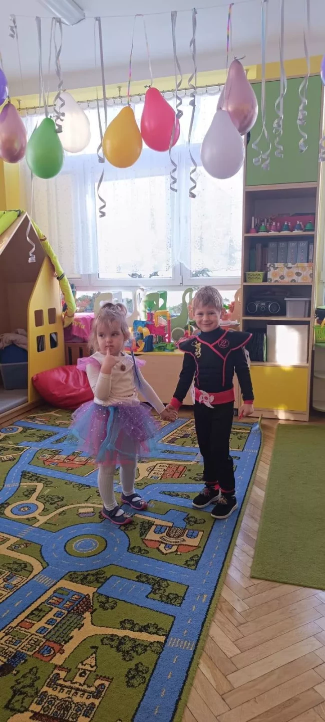 W naszym przedszkolu odbył się radosny Bal Karnawałowy!⛄❄️ Tego dnia sale wypełniły się kolorowymi strojami, uśmiechami i wspaniałą zabawą. Dzieci chętnie brały udział w tańcach oraz wesołych konkursach, które dostarczyły im wielu emocji i śmiechu.😄Nie zabrakło również pamiątkowych zdjęć, które uchwyciły te wyjątkowe chwile, a po zabawie na wszystkich czekał smaczny poczęstunek.🍬🍎🎂 To był dzień pełen radości i niezapomnianych wrażeń!
