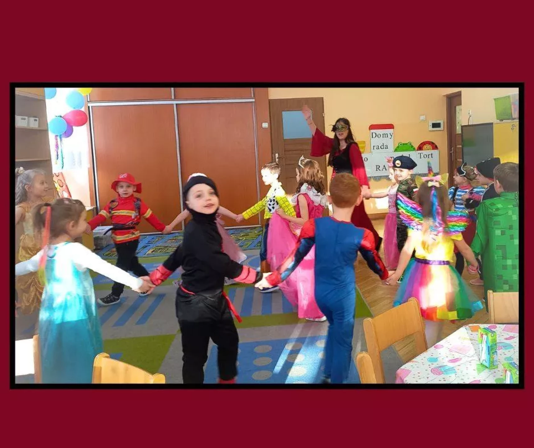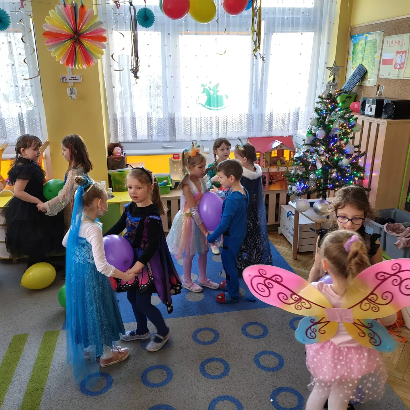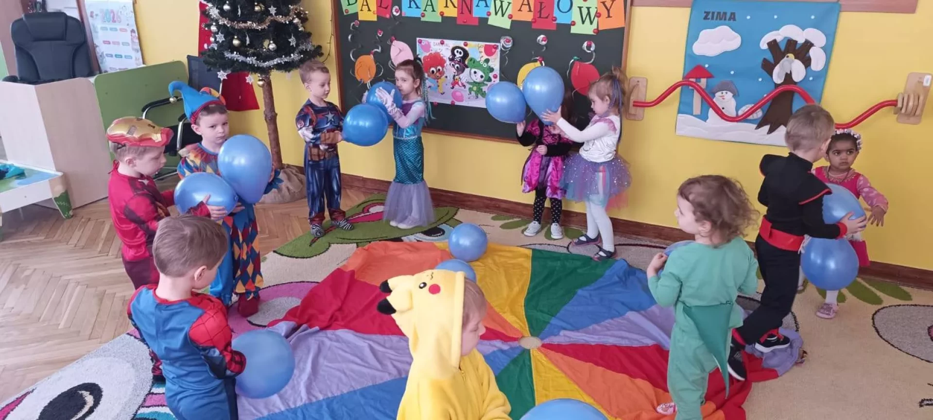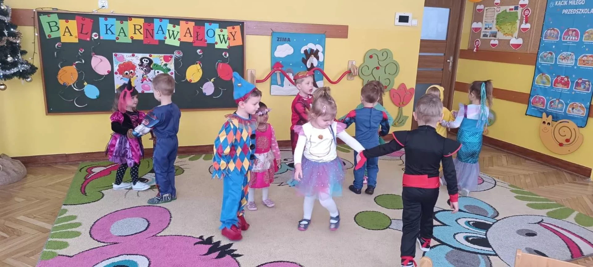W naszym przedszkolu odbył się radosny Bal Karnawałowy!⛄❄️ Tego dnia sale wypełniły się kolorowymi strojami, uśmiechami i wspaniałą zabawą. Dzieci chętnie brały udział w tańcach oraz wesołych konkursach, które dostarczyły im wielu emocji i śmiechu.😄Nie zabrakło również pamiątkowych zdjęć, które uchwyciły te wyjątkowe chwile, a po zabawie na wszystkich czekał smaczny poczęstunek.🍬🍎🎂 To był dzień pełen radości i niezapomnianych wrażeń!