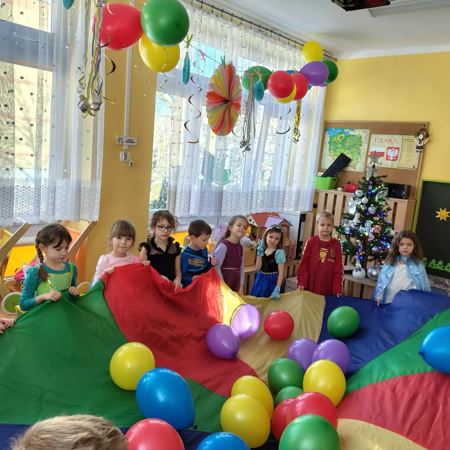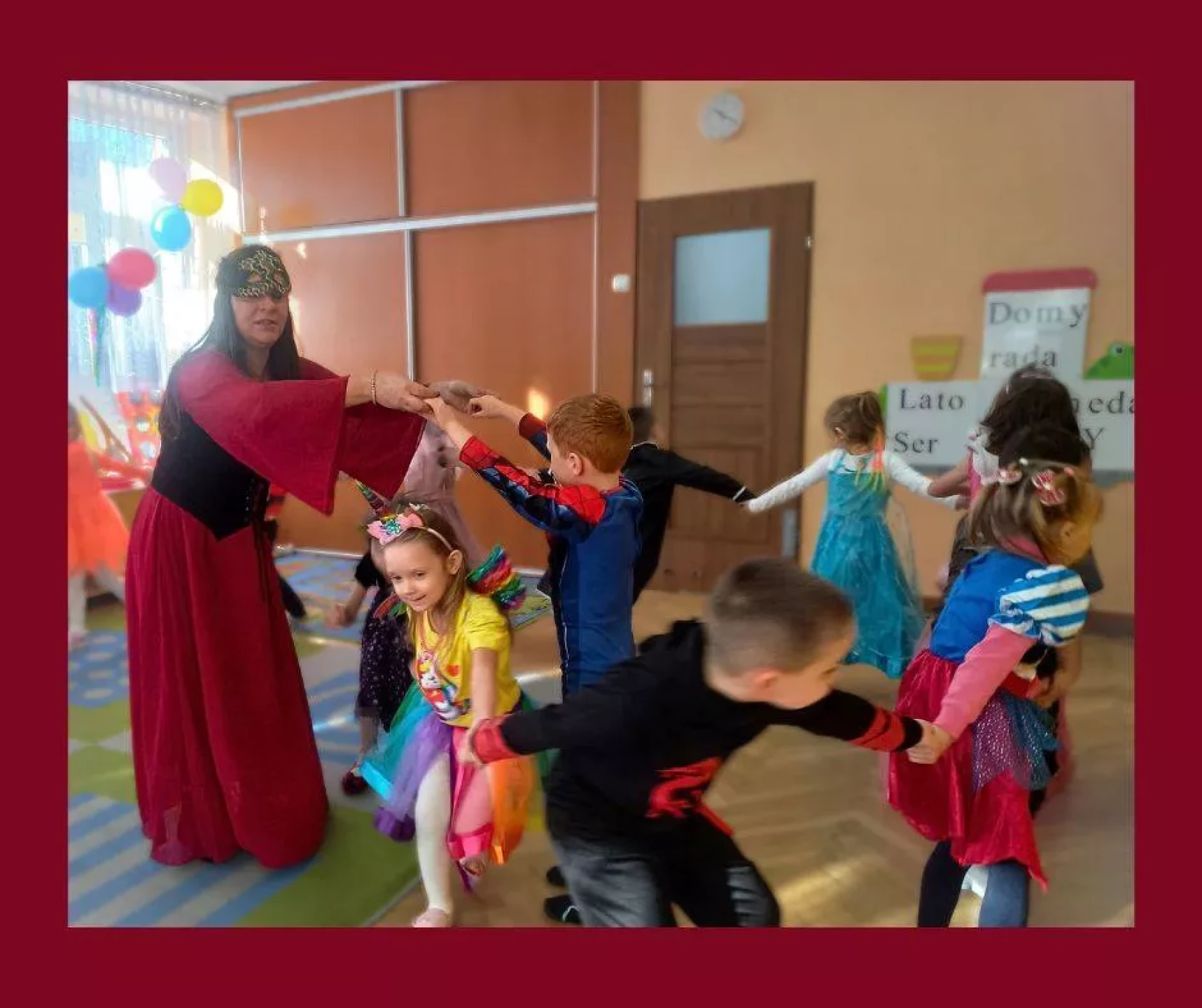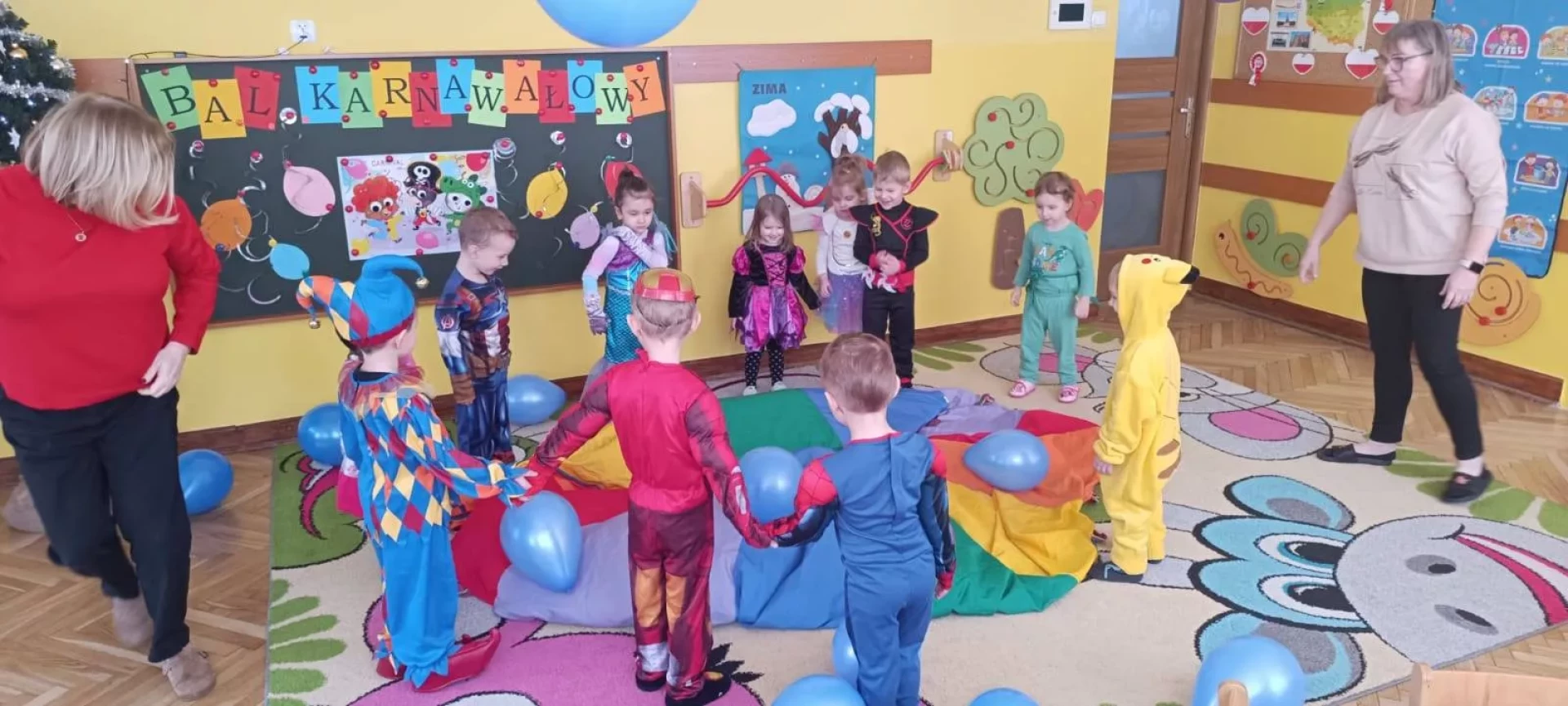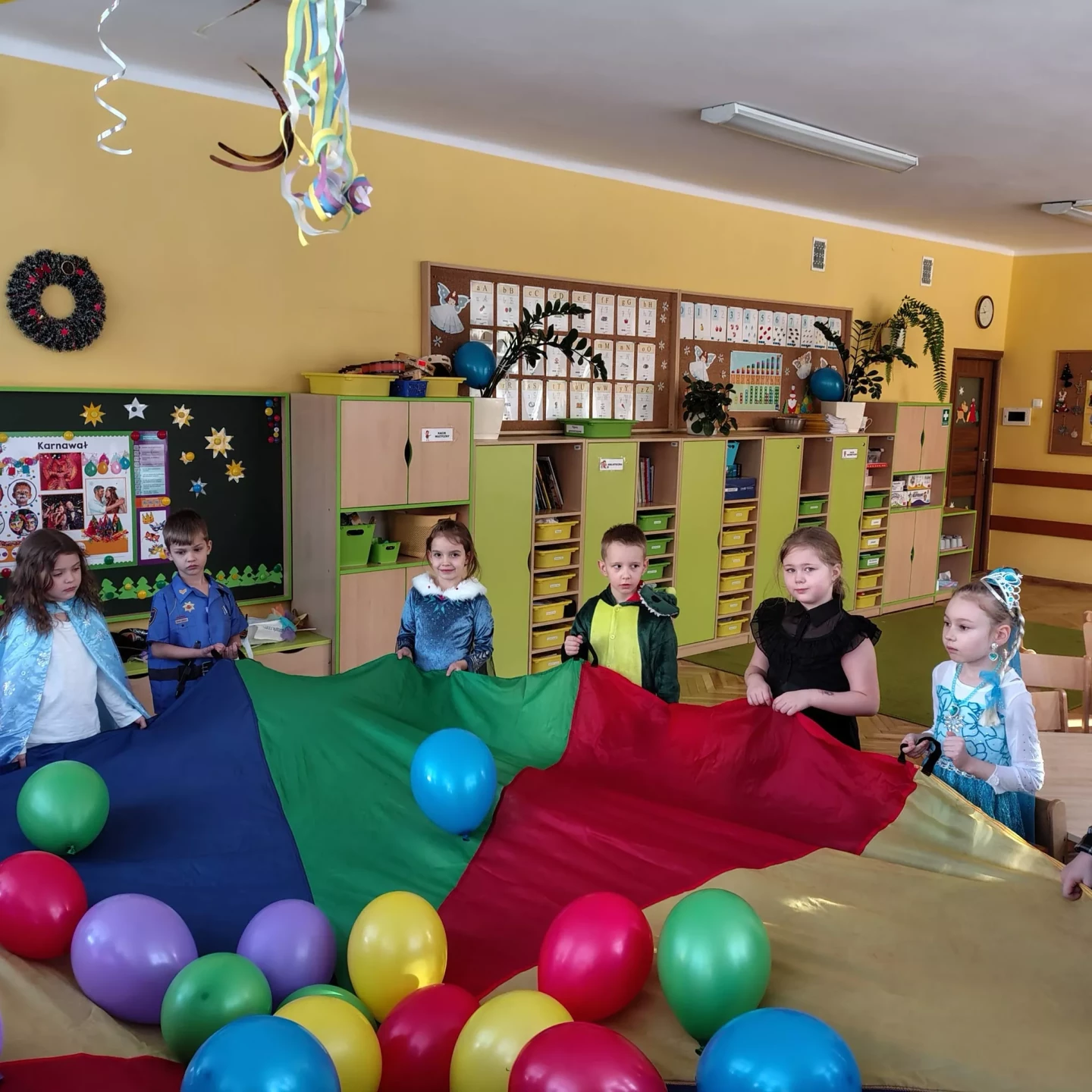 W naszym przedszkolu odbył się radosny Bal Karnawałowy!⛄❄️ Tego dnia sale wypełniły się kolorowymi strojami, uśmiechami i wspaniałą zabawą. Dzieci chętnie brały udział w tańcach oraz wesołych konkursach, które dostarczyły im wielu emocji i śmiechu.😄Nie zabrakło również pamiątkowych zdjęć, które uchwyciły te wyjątkowe chwile, a po zabawie na wszystkich czekał smaczny poczęstunek.🍬🍎🎂 To był dzień pełen radości i niezapomnianych wrażeń!