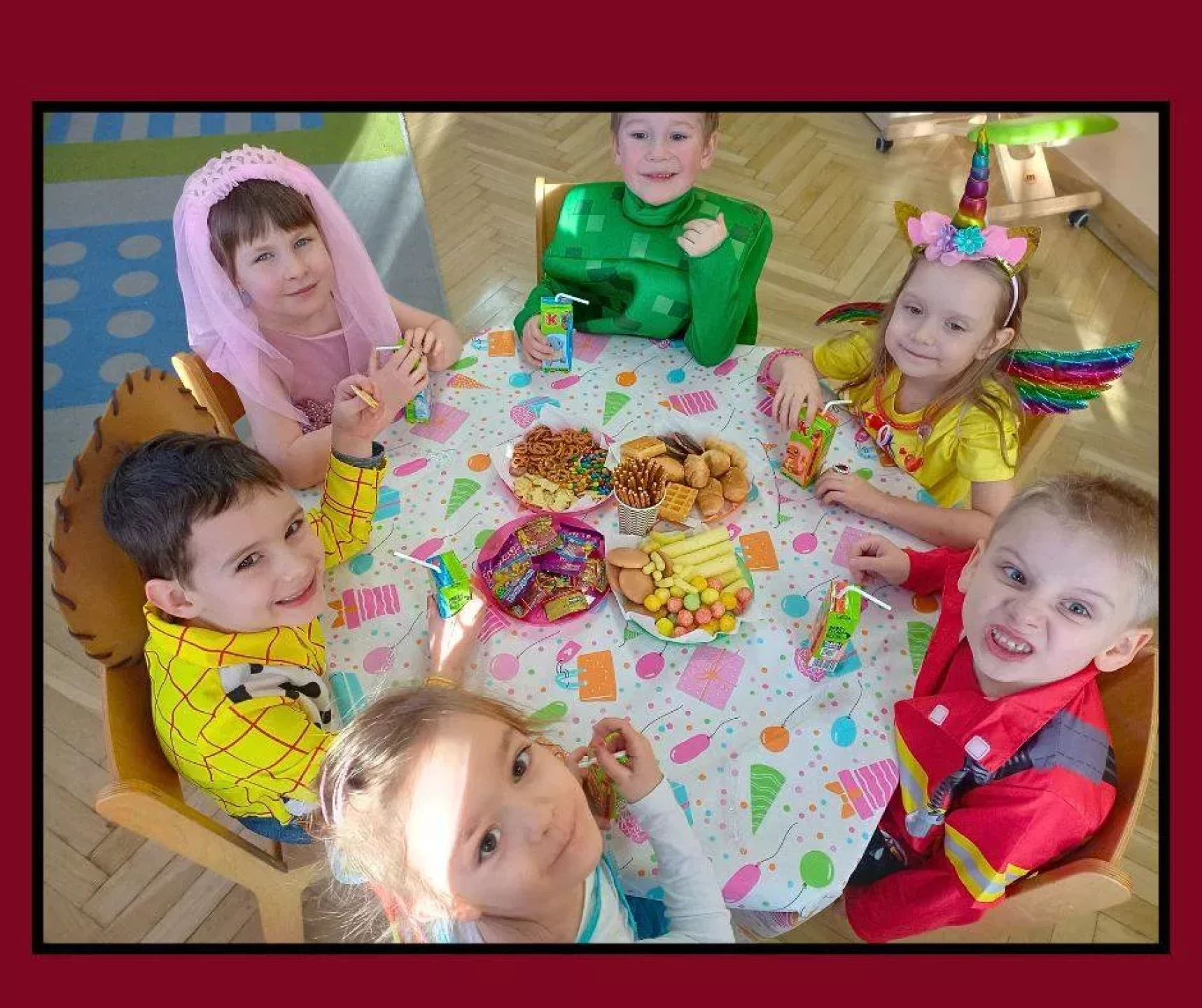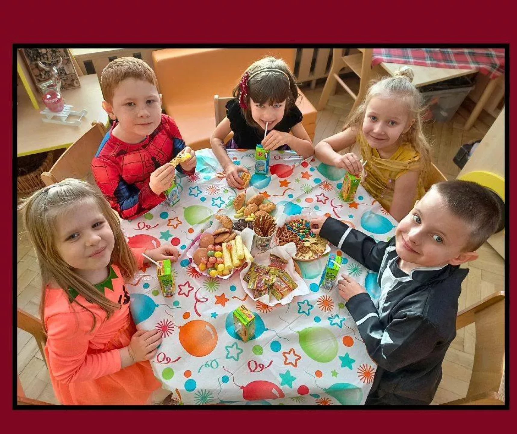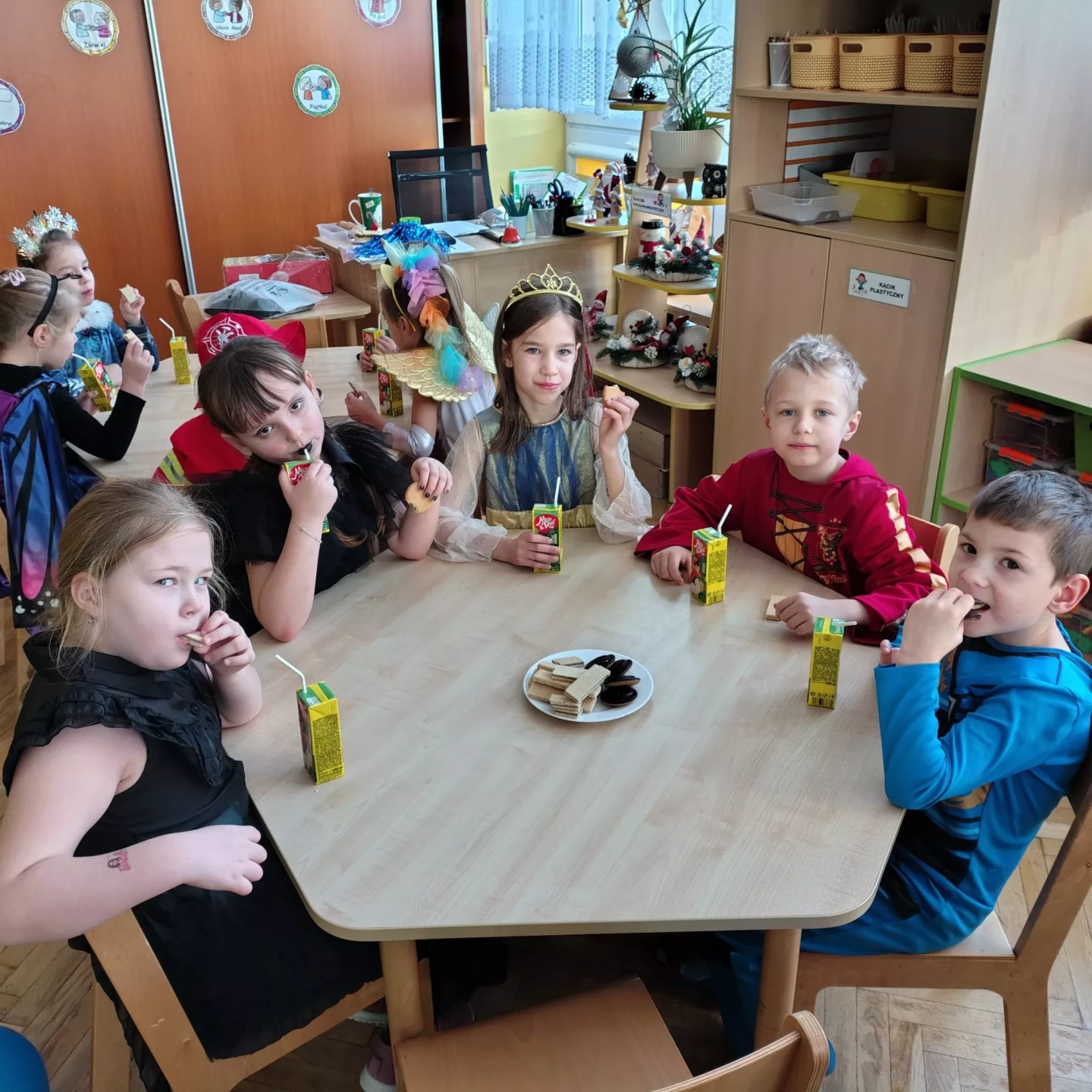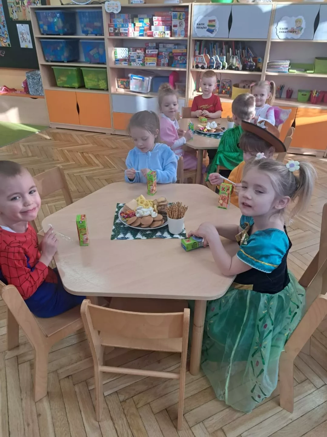 W naszym przedszkolu odbył się radosny Bal Karnawałowy!⛄❄️ Tego dnia sale wypełniły się kolorowymi strojami, uśmiechami i wspaniałą zabawą. Dzieci chętnie brały udział w tańcach oraz wesołych konkursach, które dostarczyły im wielu emocji i śmiechu.😄Nie zabrakło również pamiątkowych zdjęć, które uchwyciły te wyjątkowe chwile, a po zabawie na wszystkich czekał smaczny poczęstunek.🍬🍎🎂 To był dzień pełen radości i niezapomnianych wrażeń!