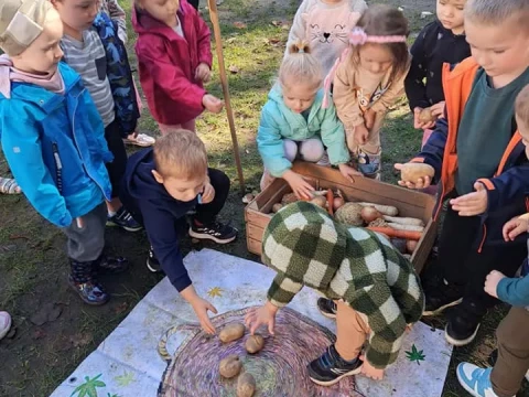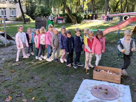 Przedszkolaki z Lajkonika wspólnie uczestniczyły w Dniu Ziemniaka. Dzieci brały udział w zabawach i konkursach ziemniaczanych w ogrodzie przedszkolnym. Zabawy i radości było co niemiara. 🍂🍁🌿