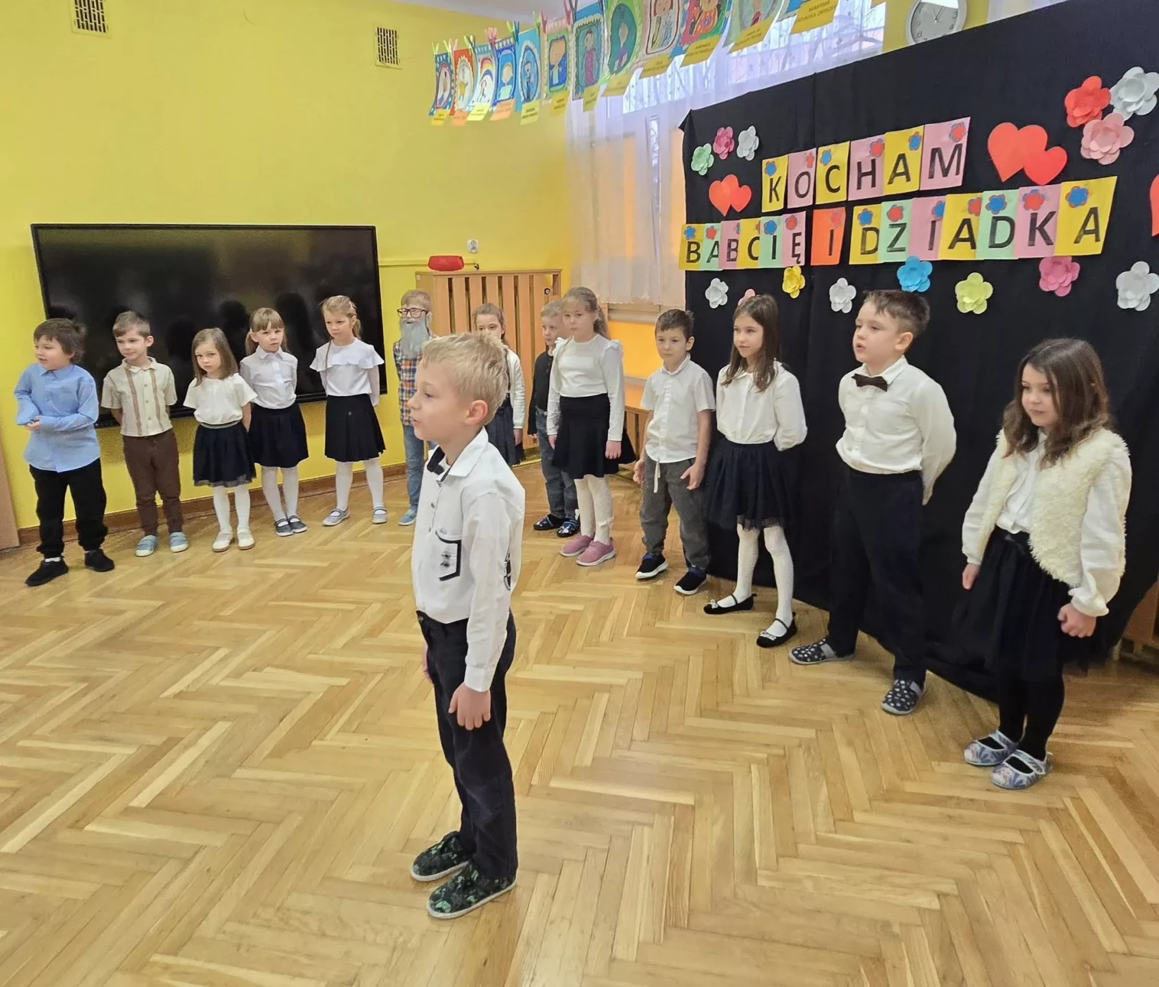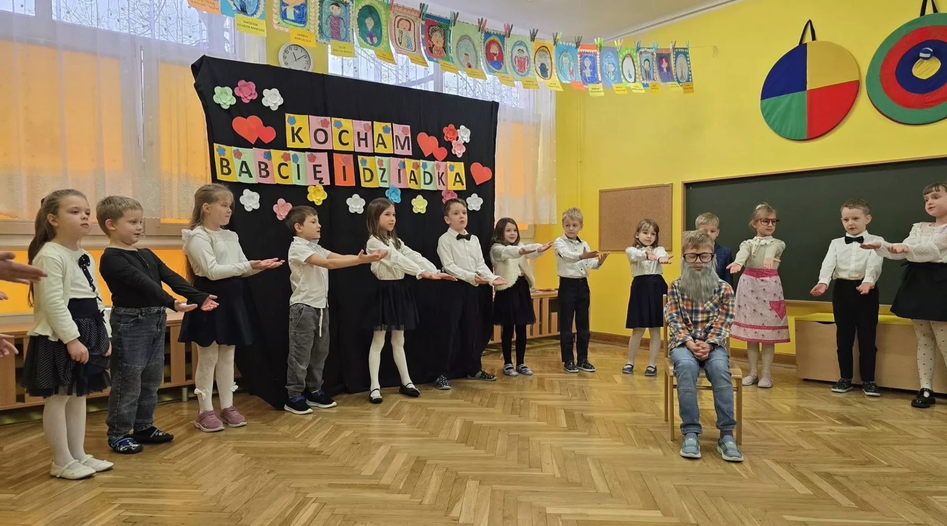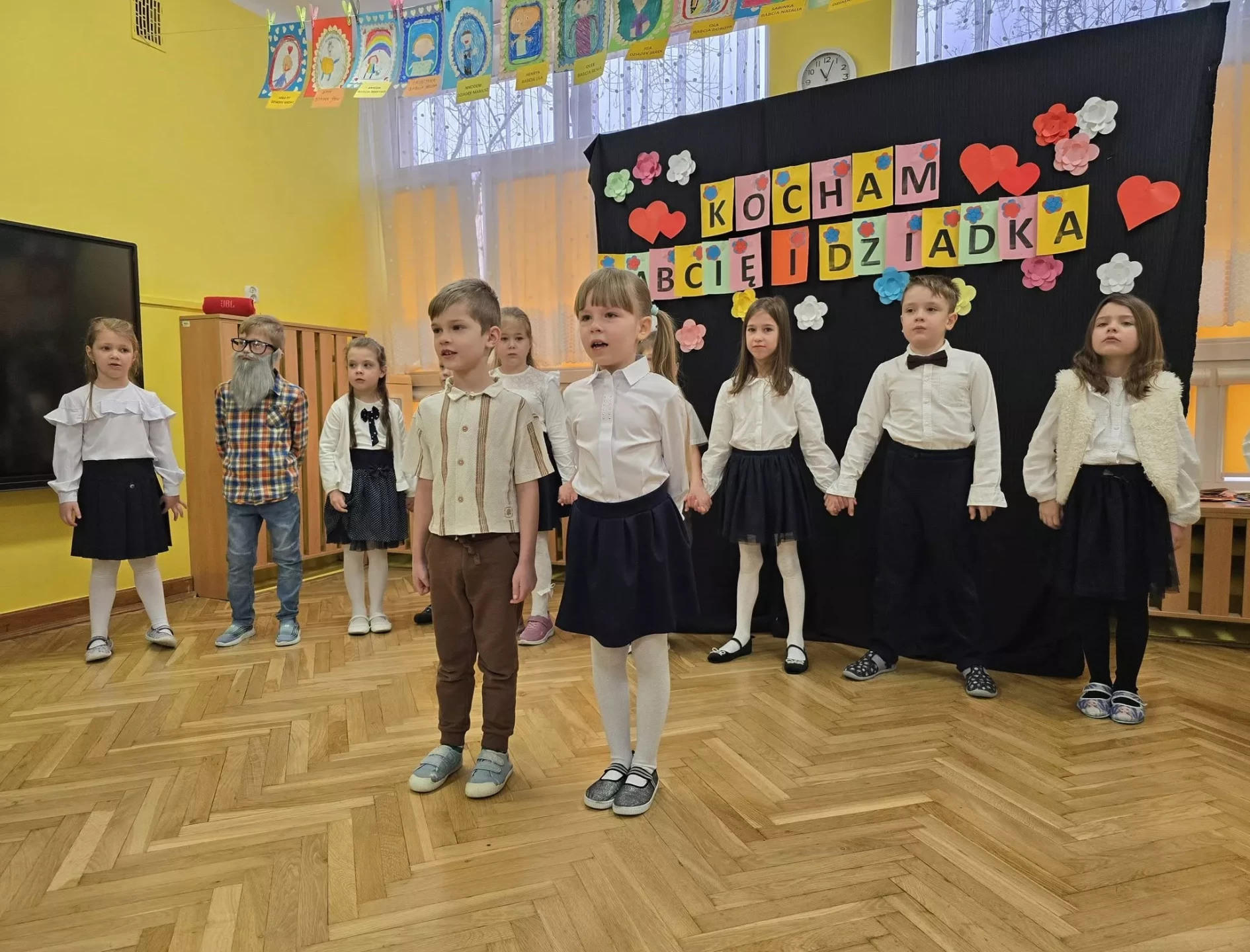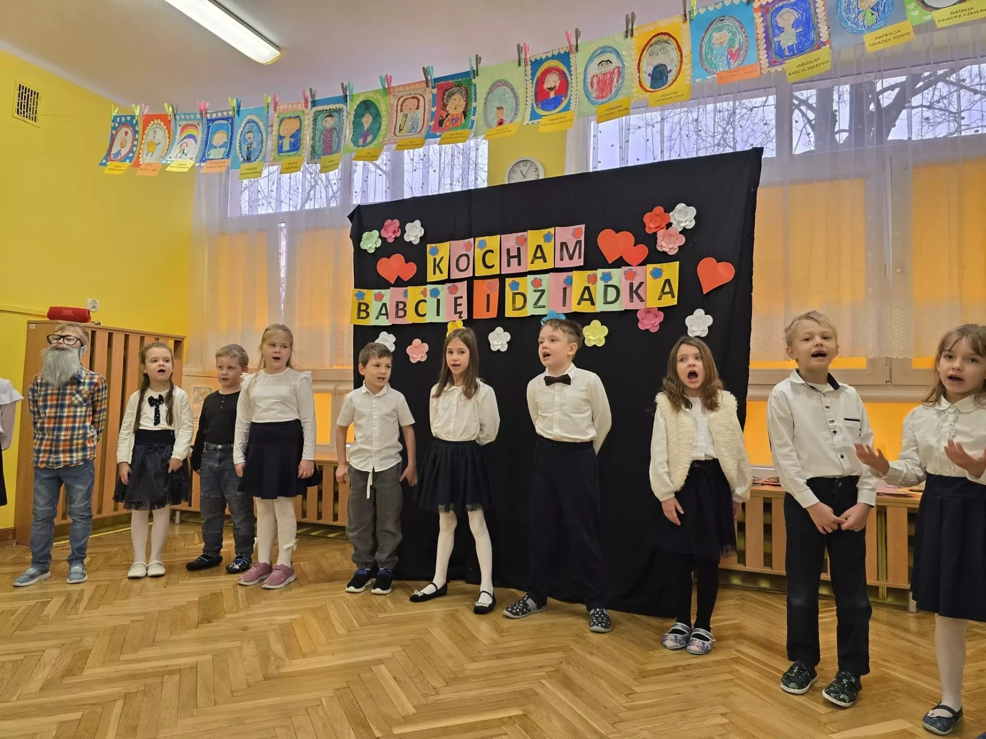 ❤️Z okazji święta Babć i Dziadków dzieci z grupy IV "Lajkoniki" zaprezentowały montaż słowno-muzyczny pt. "Kocham Babcię i Dzadka".❤️ Były wiersze, piosenki, taniec, gra na instrumentach oraz uśmiechy i wiele wzruszeń.❤️Dzieci wręczyły swoim ukochanym Gościom własnoręcznie wykonane serduszkowe laurki, a także zaprezentowały galerię prac plastycznych "Moja Babcia, mój Dziadek". Dziękujemy Babciom i Dziadkom za obecność, miłość i ciepło, którymi każdego dnia otaczają swoje wnuki. Życzymy dużo zdrowia i samych pięknych chwil.❤️