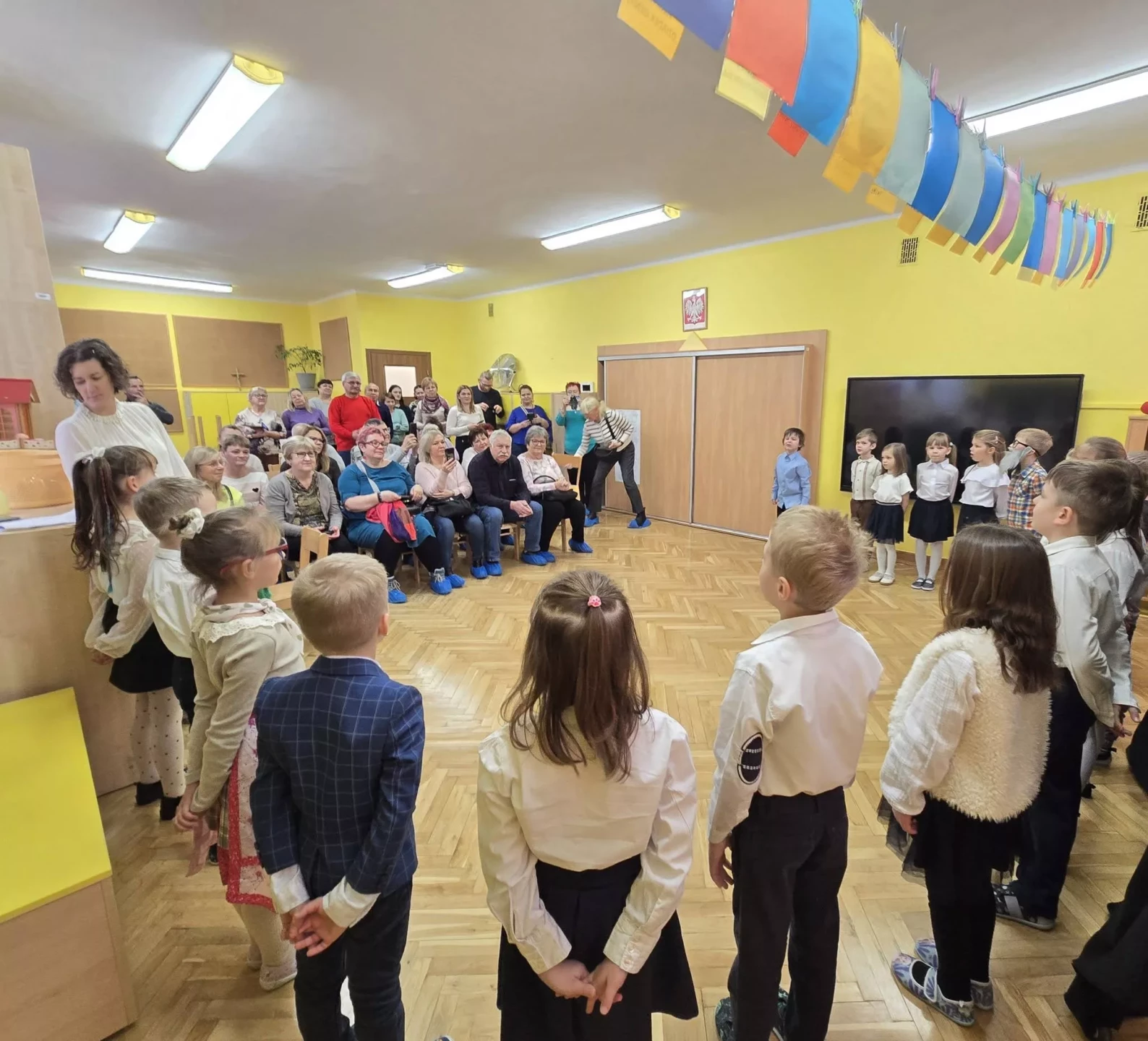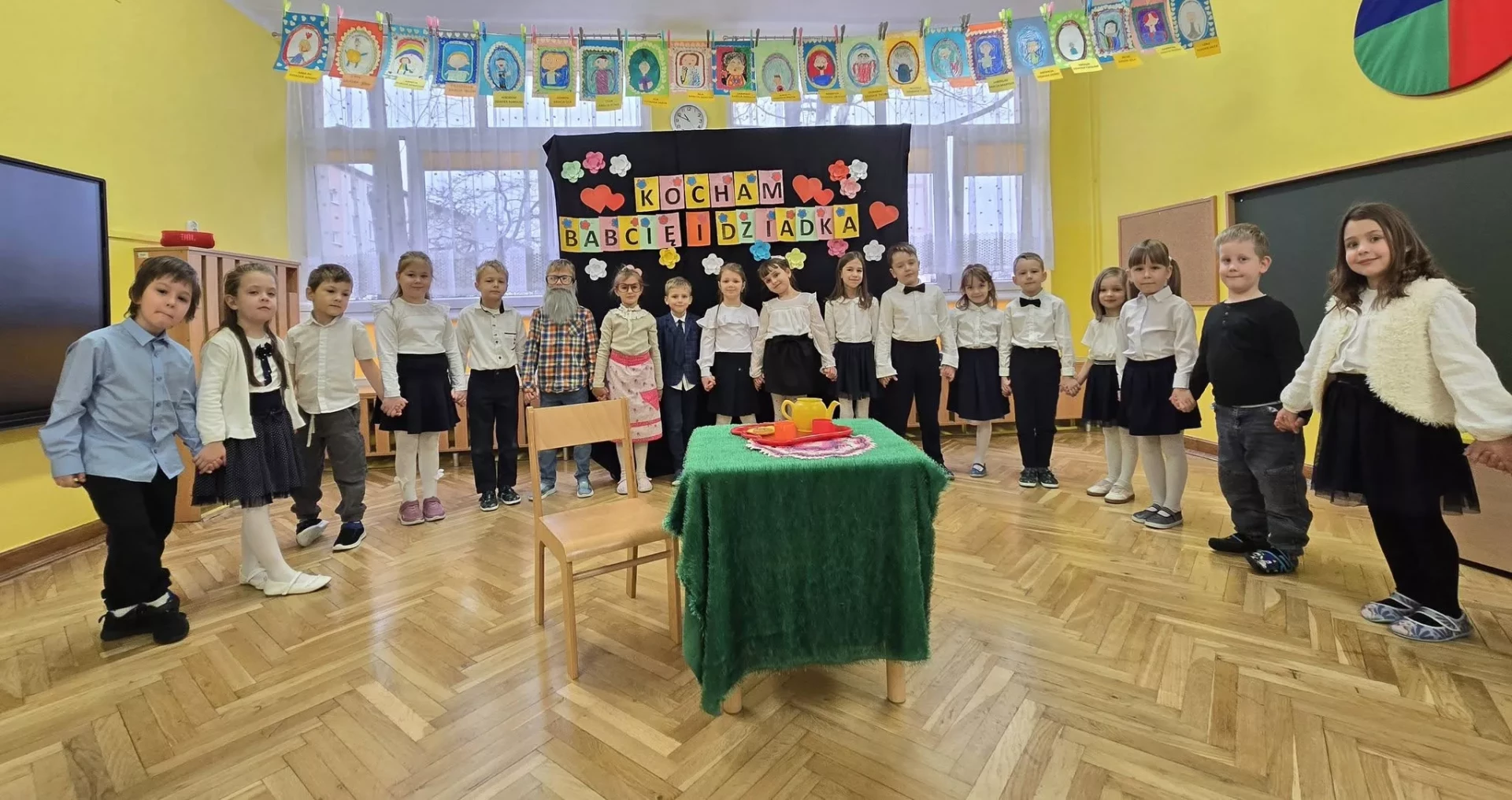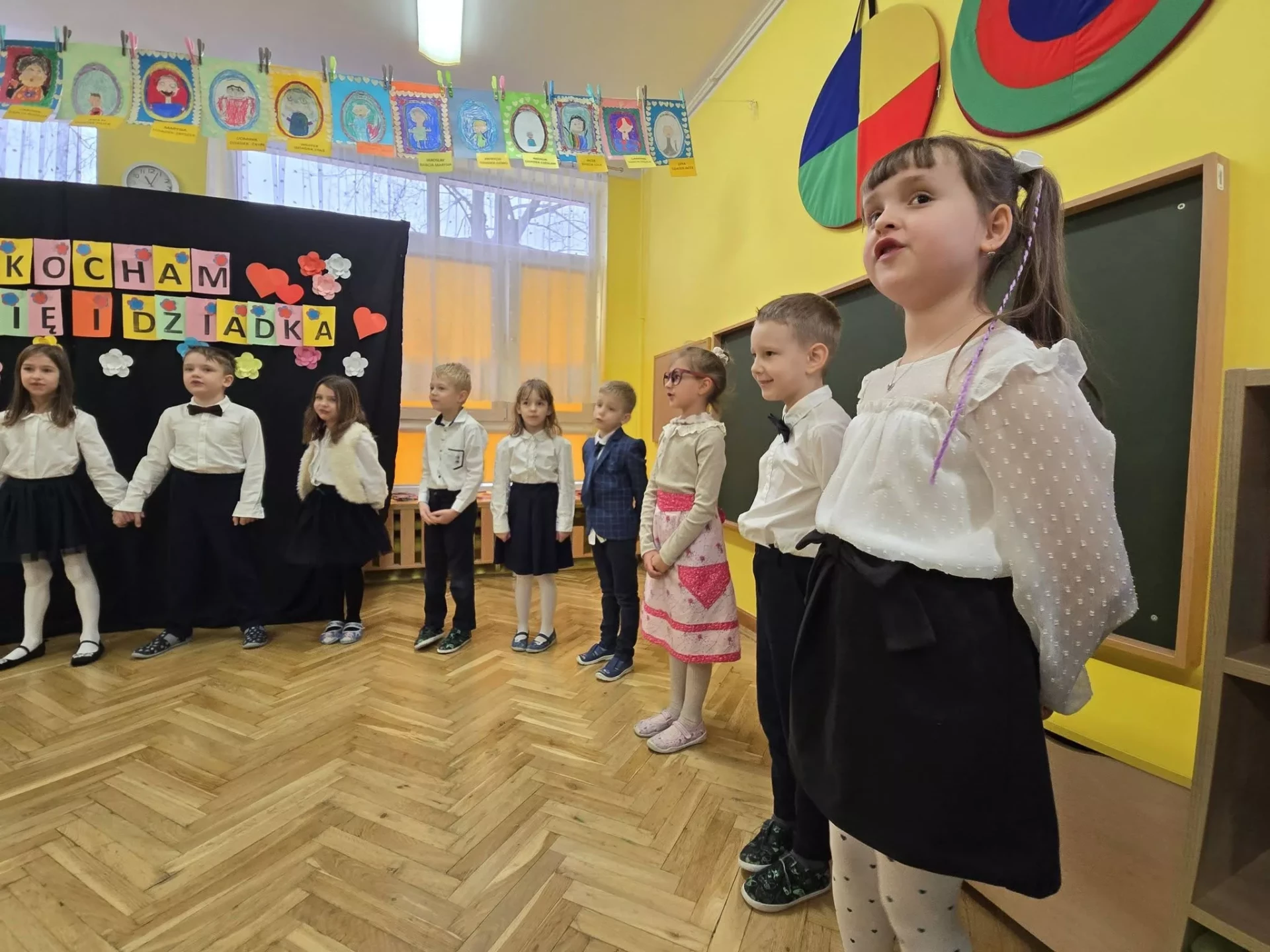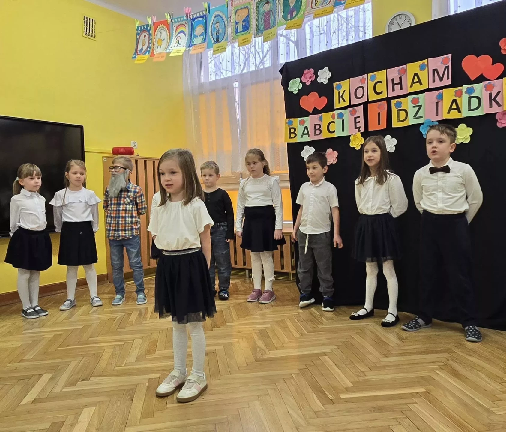 ❤️Z okazji święta Babć i Dziadków dzieci z grupy IV "Lajkoniki" zaprezentowały montaż słowno-muzyczny pt. "Kocham Babcię i Dzadka".❤️ Były wiersze, piosenki, taniec, gra na instrumentach oraz uśmiechy i wiele wzruszeń.❤️Dzieci wręczyły swoim ukochanym Gościom własnoręcznie wykonane serduszkowe laurki, a także zaprezentowały galerię prac plastycznych "Moja Babcia, mój Dziadek". Dziękujemy Babciom i Dziadkom za obecność, miłość i ciepło, którymi każdego dnia otaczają swoje wnuki. Życzymy dużo zdrowia i samych pięknych chwil.❤️