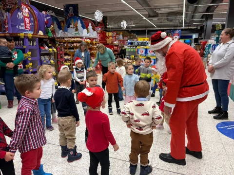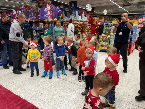 Dzieci z grup Koraliki i Krakowiaczki z radością powitały Świętego Mikołaja tańcem i piosenką, tworząc magiczną atmosferę pełną uśmiechów i świątecznego ciepła. 🌲⭐ Mikołaj oczywieście nie przyszedł z pustymi rękami! Każde dziecko otrzymało niespodziankowy upominek.❤️