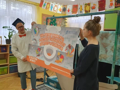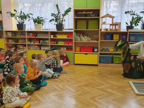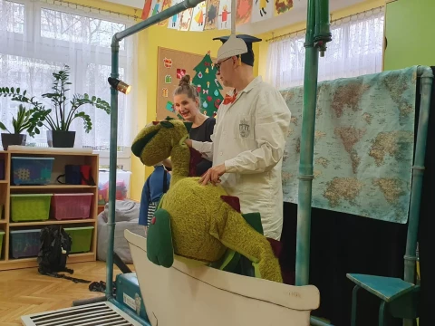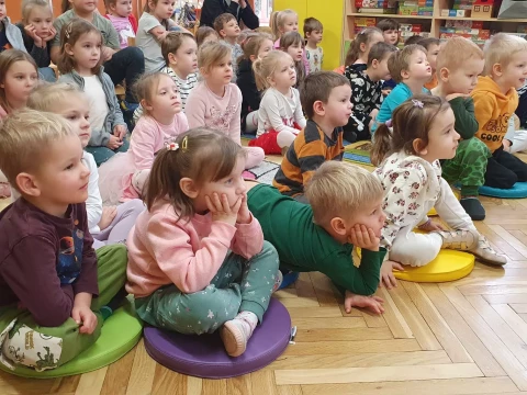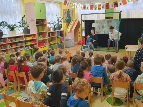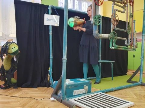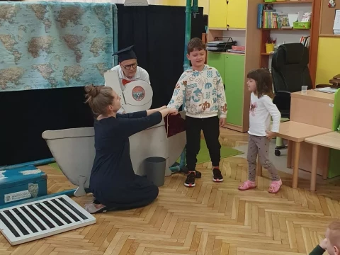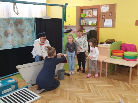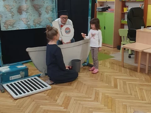 W dniu 4.12.2024 r. w Lajkoniku przedszkolaki uczestniczyły w spektaklu pt. "Wyprawa Batyskafem - Misja Skratek" przygotowanym przez Wodociągi Miasta Krakowa.