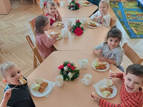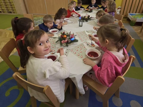 W domach już zaczyna pachnieć piernikami, choinki cieszą swym blaskiem i słychać wzruszające melodie kolęd. Tymczasem w naszym przedszkolu już świętujemy. W radosny nastrój wprowadziła nas grupa "Lajkoników", która przygotowała świąteczne przedstawienie. Były wiersze, tańce i granie na instrumentach. Panie kucharki zadbały o świąteczny obiad i wszystkim udzieliła się świąteczna atmosfera.🎄⭐🎄