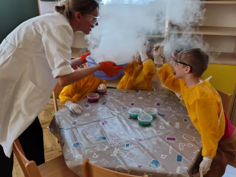 Warsztaty edukacyjne "Chmieczne cuda" zorgaznizowane w Lajkoniku były wyjątkową okazją dla dzieci do zanurzenia się w fascynujący świat nauki. Podczas zajęć młodzi uczestnicy mieli szanse odkrywać tajemnice reakcji chemicznych, poznając jednocześnie ich praktyczne zastosowanie w życiu codziennym. Największe emocje wzbudziły spektakularne eksperyment, które mali odkrywcy wykonywali pod czujnym okiem prowadzących. Kolorowe reakcje, efektowne zmiany stanów skupienia czy zaskakujące wybuchy piany, sprawiły że uczestnicy mogli poczuć się jak prawdziwi naukowcy.😊To inspirujące doświadczenie z pewnością na długo pozostanie w pamięci młodych uczestników.😊