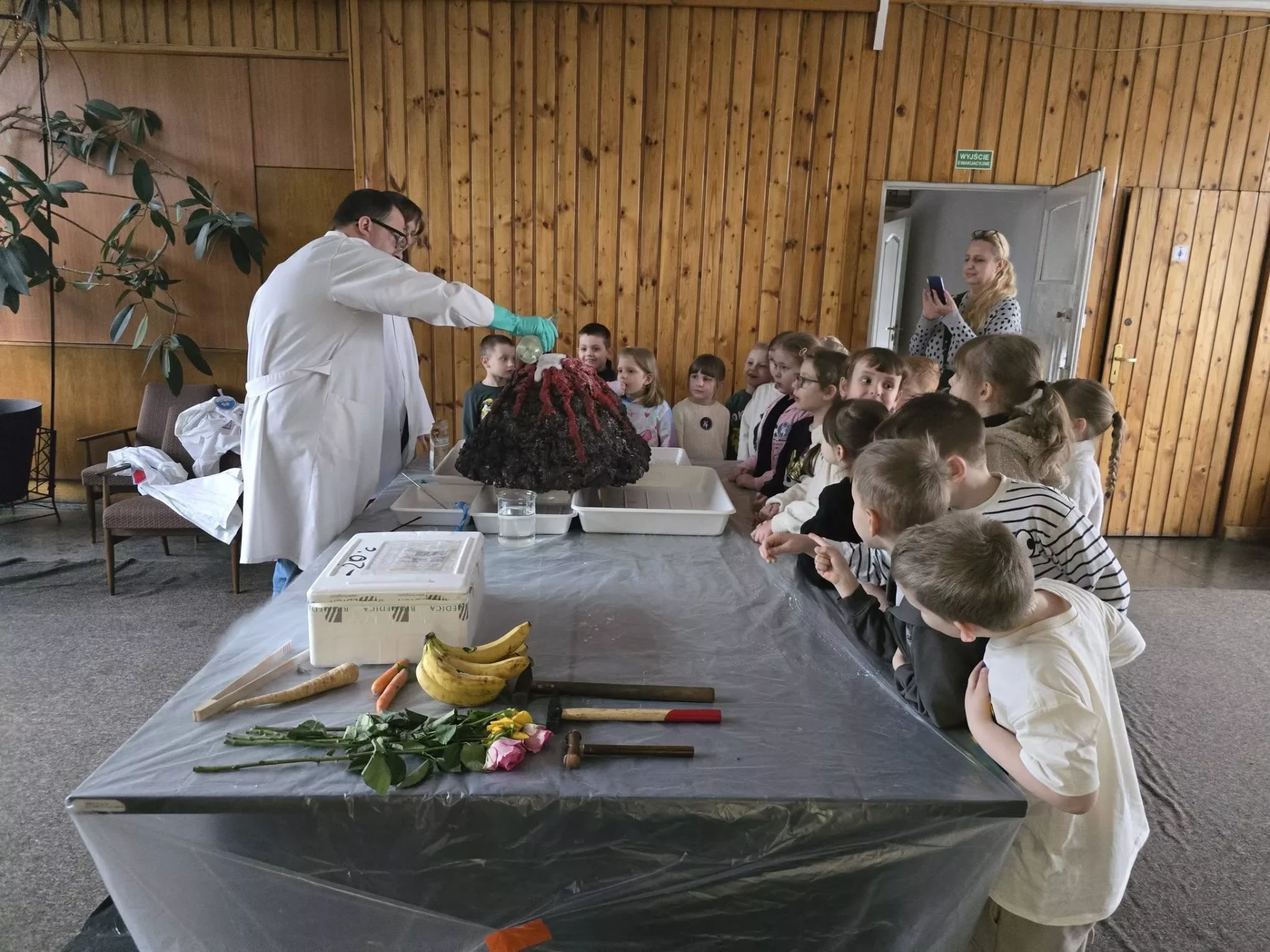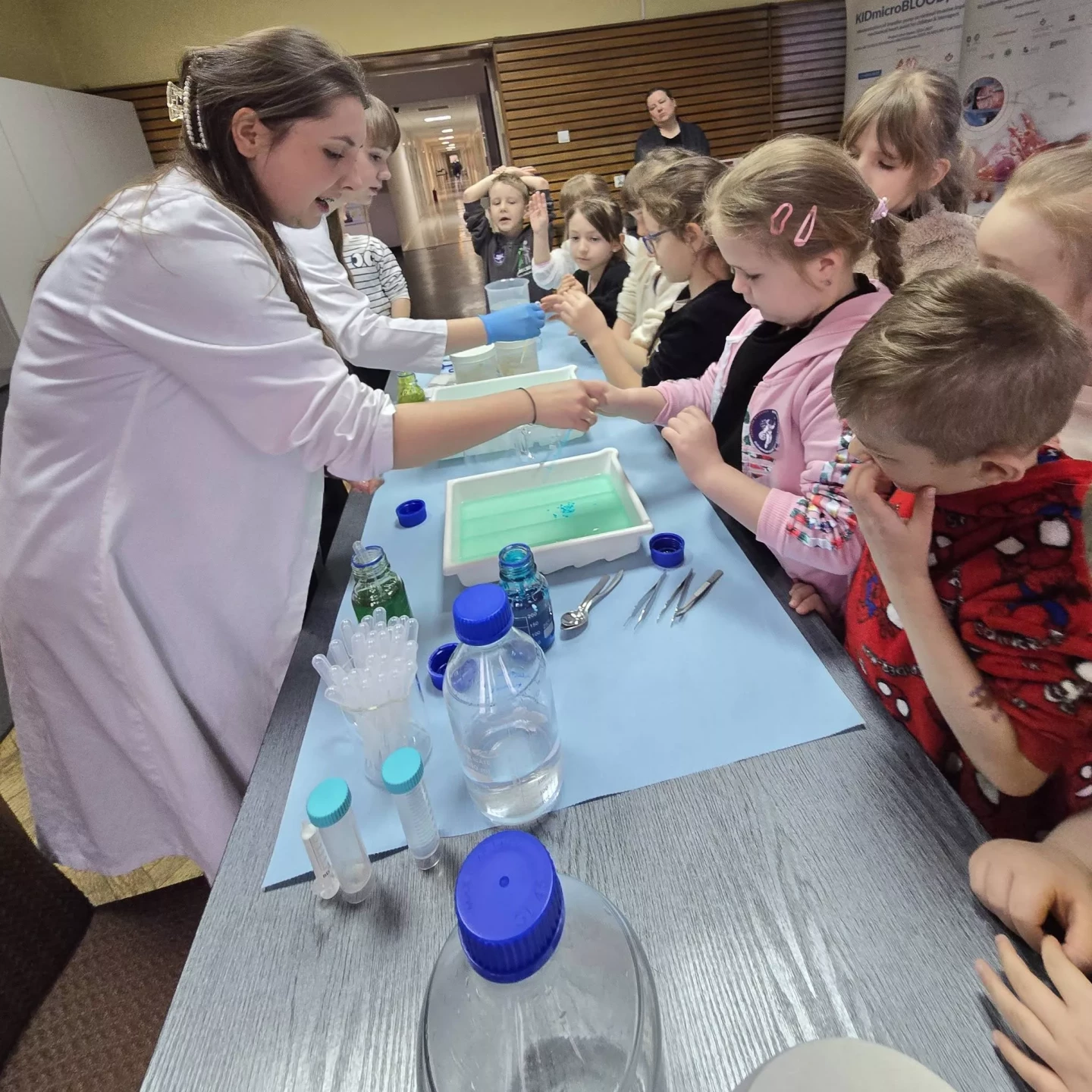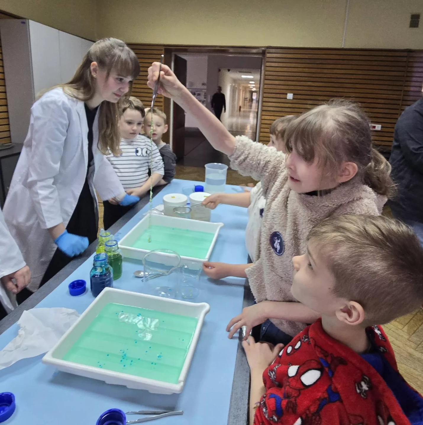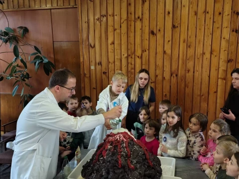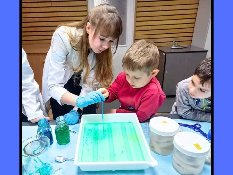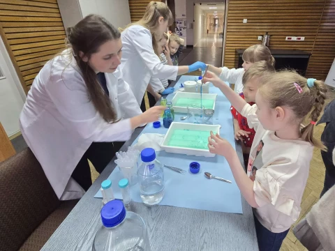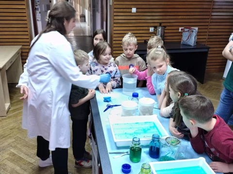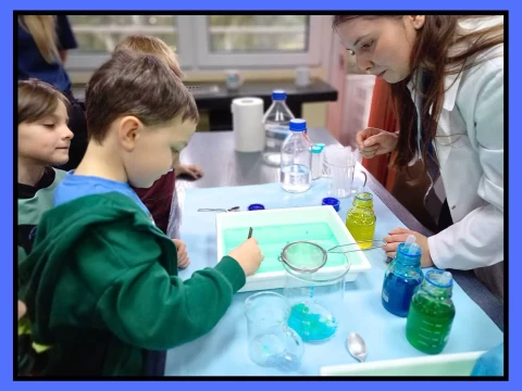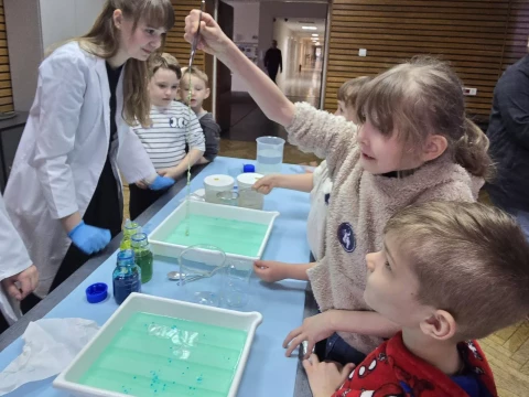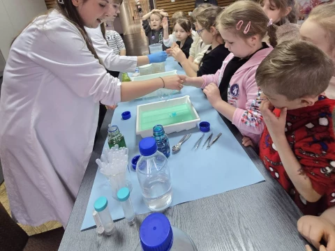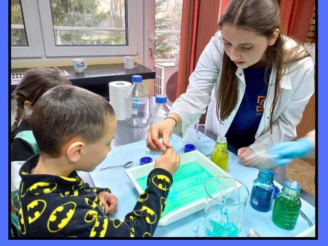 Dzieci wzięły udział w warsztatach pt. "Pokaz młodego chemika", podczas których miały okazję uczestniczyć w fascynujących eksperymentach z płynami i cieczami. Ogromne emocje wzbudził eksperyment z wulkanem, który zachwycił wszystkich uczestników!✨