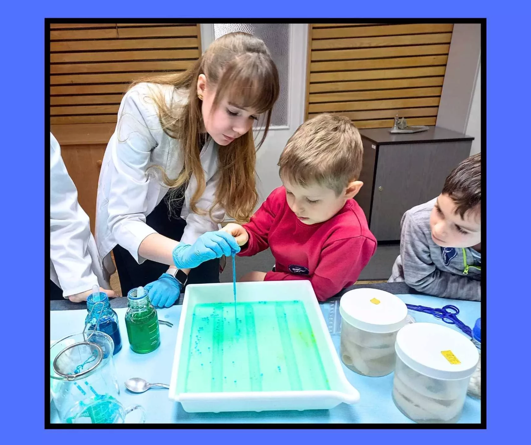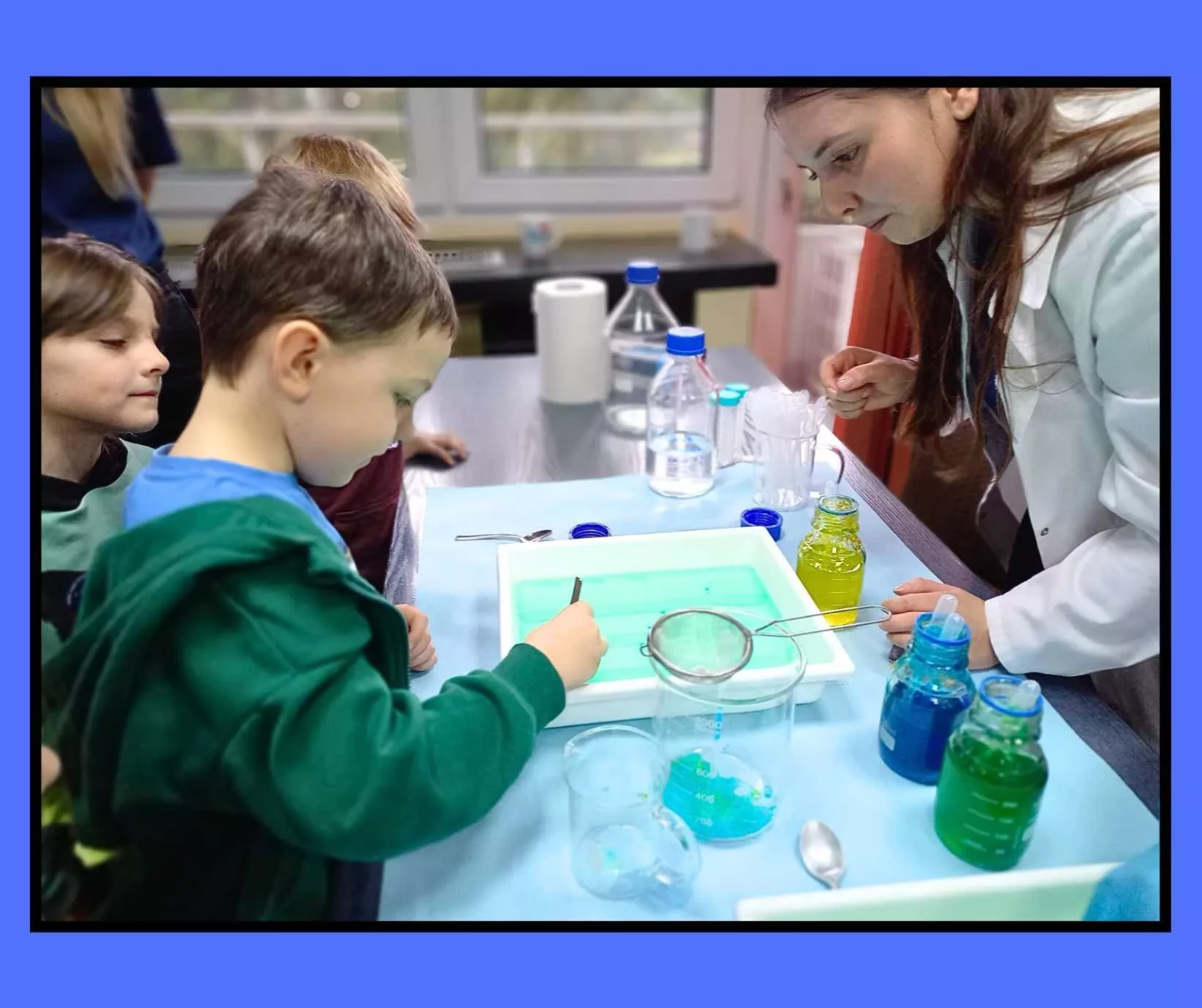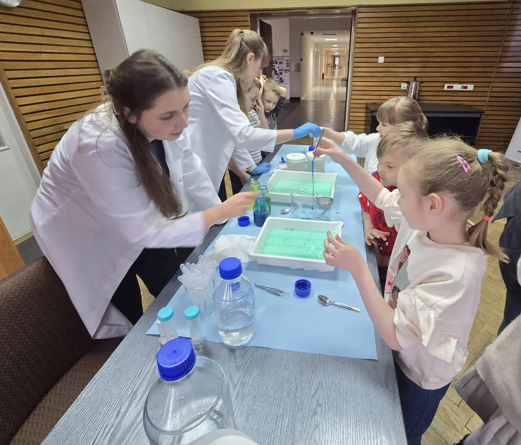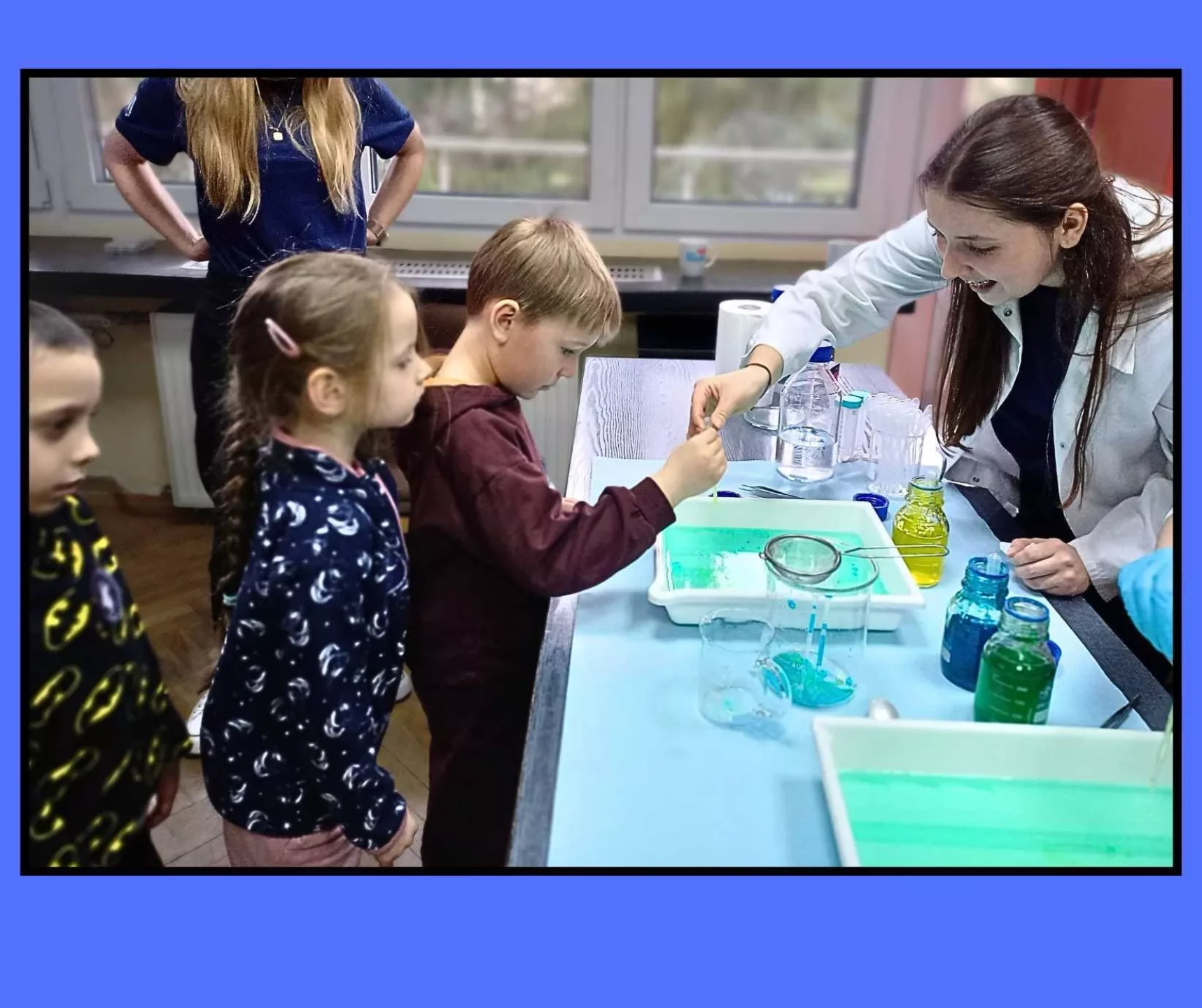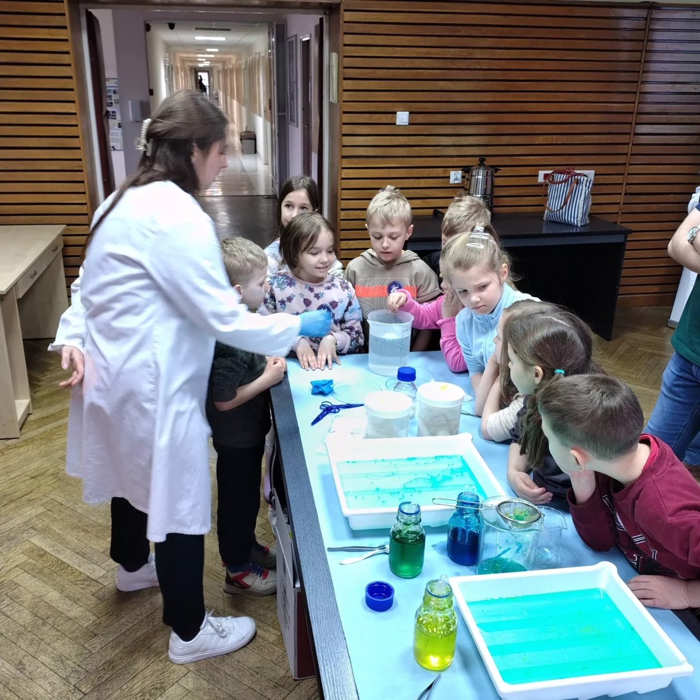 Dzieci wzięły udział w warsztatach pt. "Pokaz młodego chemika", podczas których miały okazję uczestniczyć w fascynujących eksperymentach z płynami i cieczami. Ogromne emocje wzbudził eksperyment z wulkanem, który zachwycił wszystkich uczestników!✨