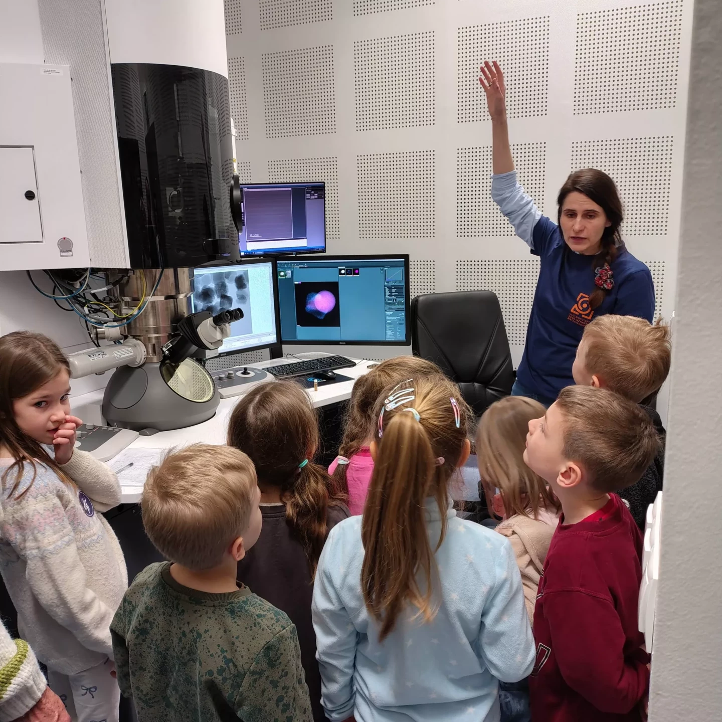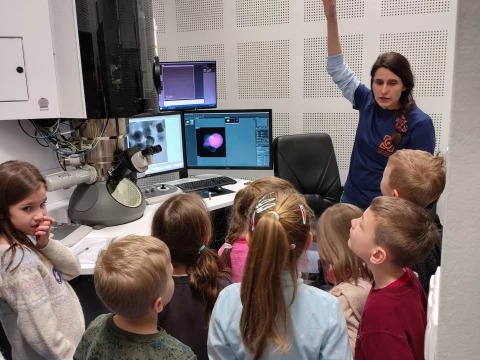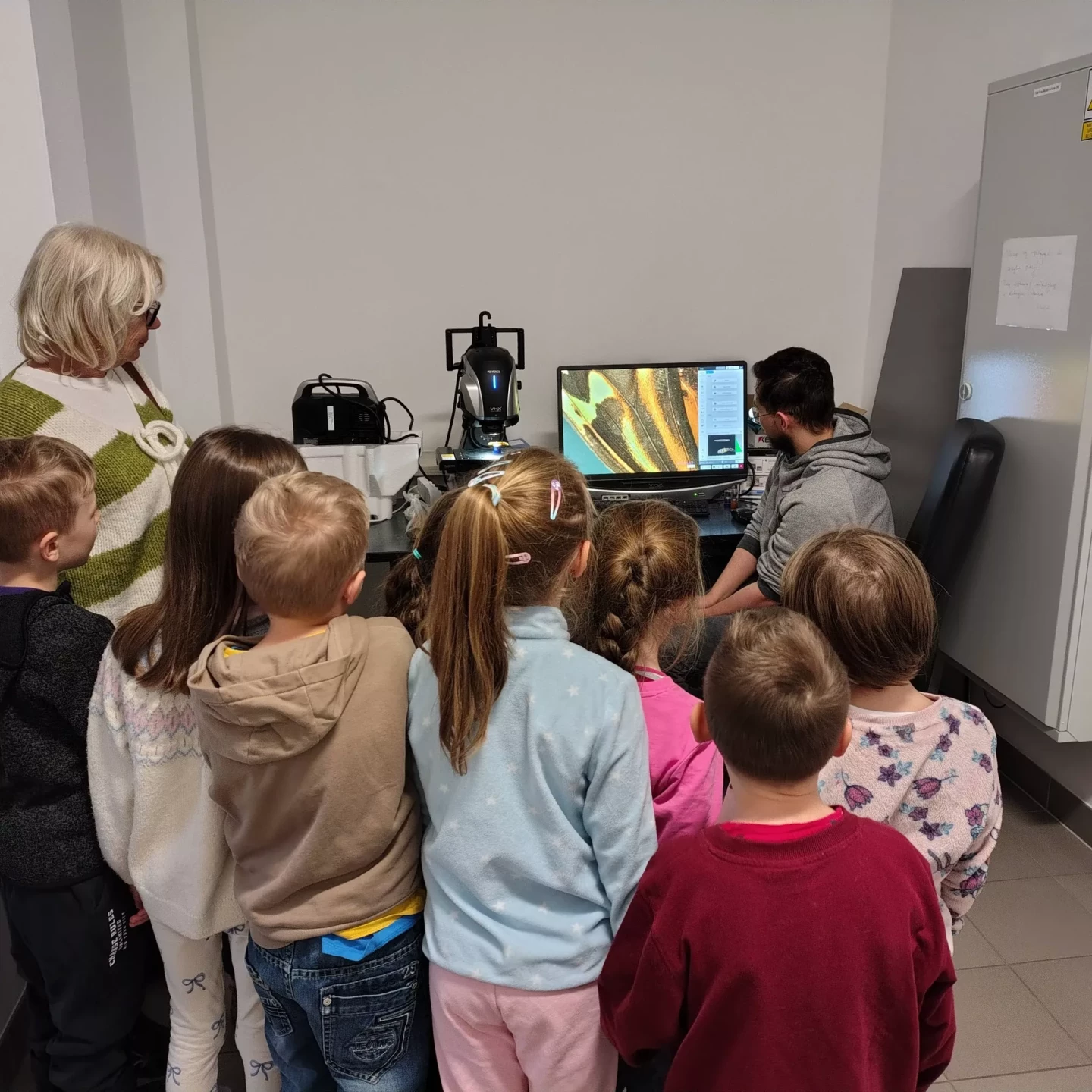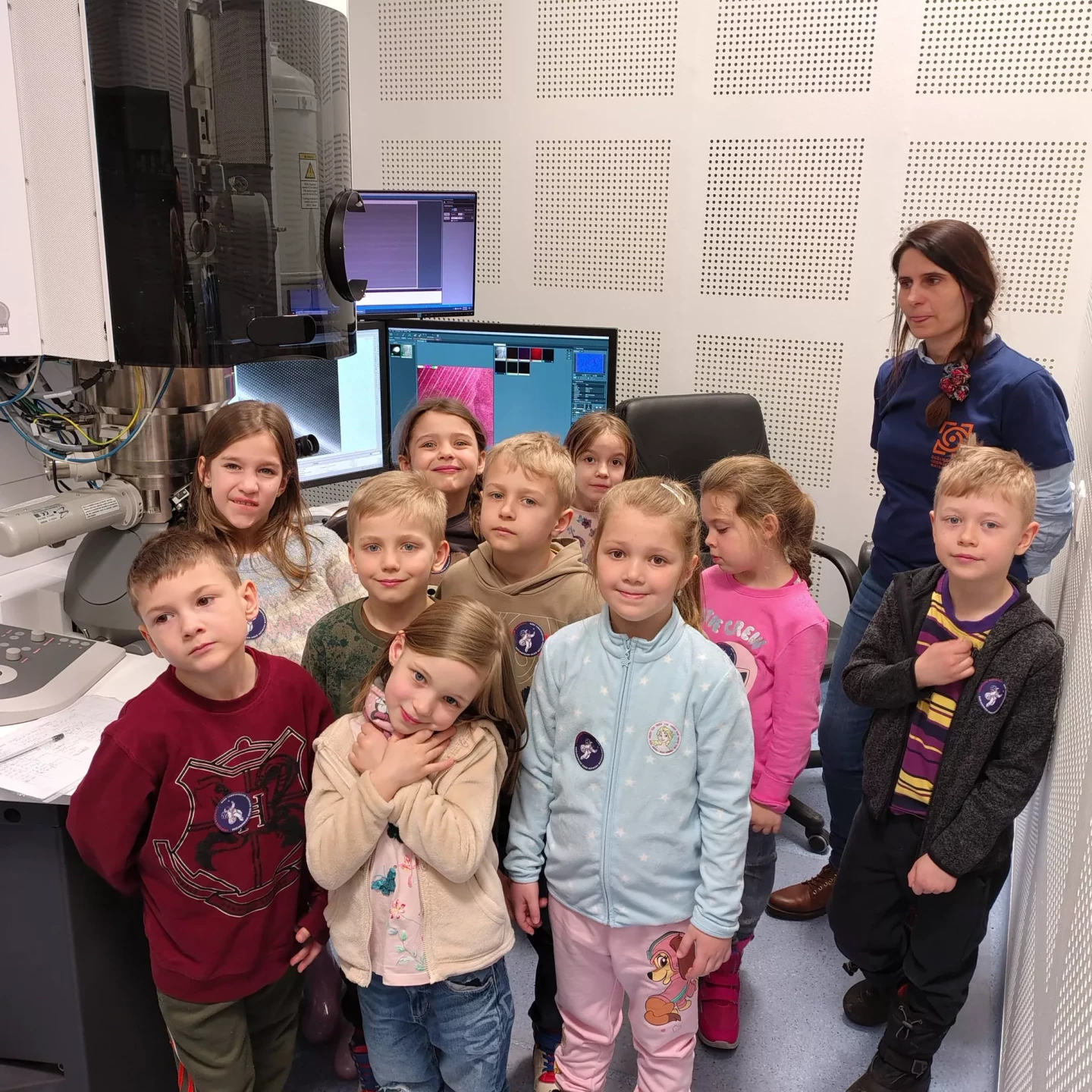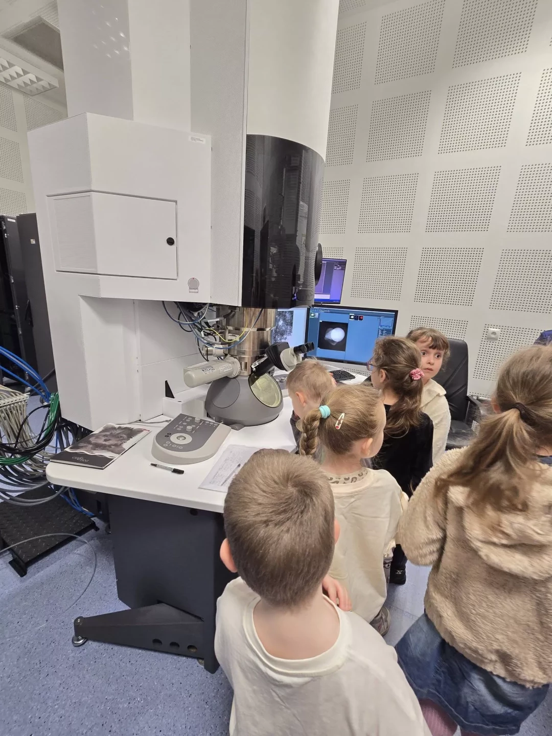 Podczas wizyty przedszkolaki zwiedzały również Instytut, poznając różnorodne maszyny oraz obsewrując z bliska duże i małe mikroskopy. Dzieci miały okazję zobaczyć, jak wygląda prawdziwa praca badawcza.✨