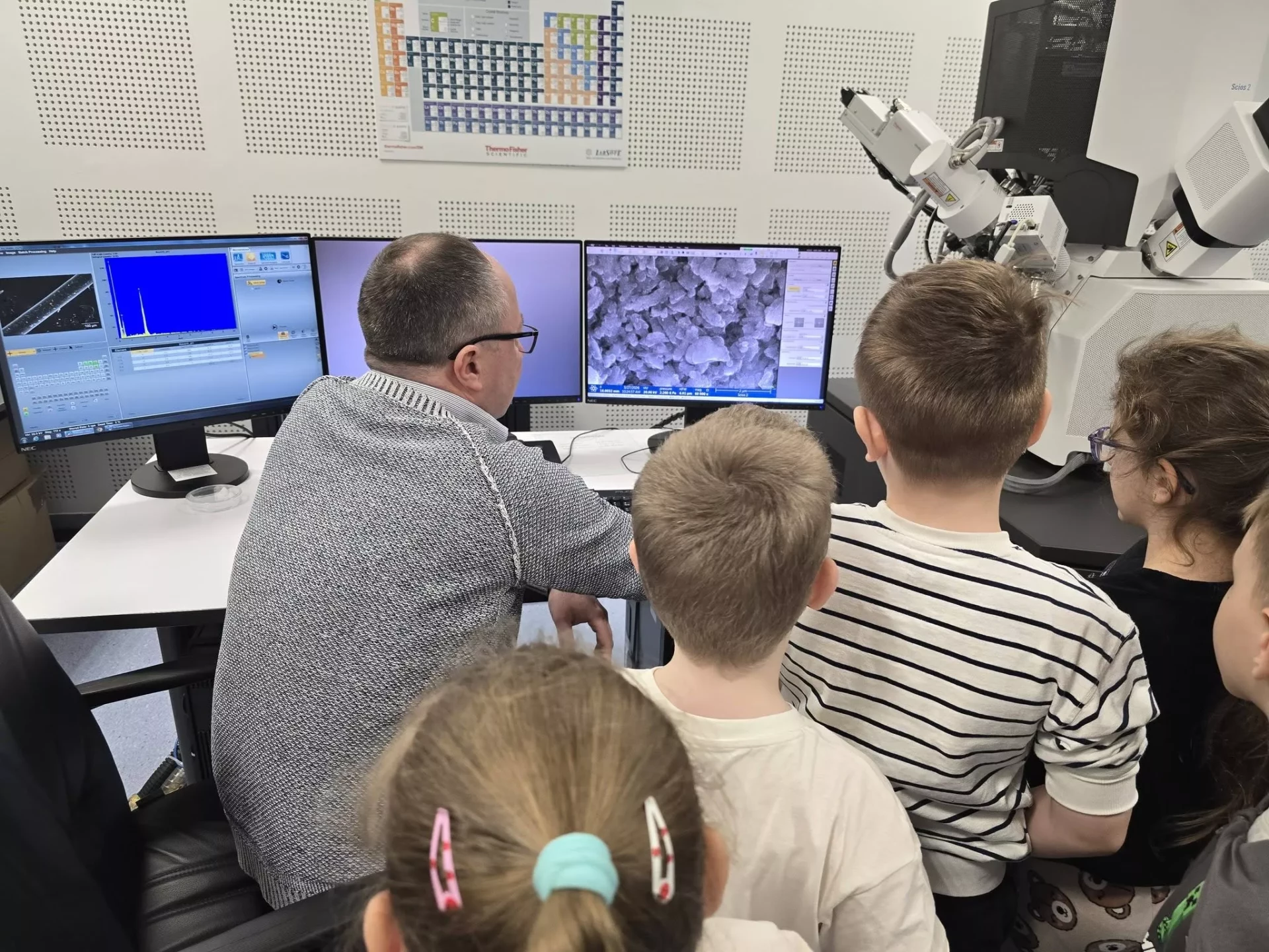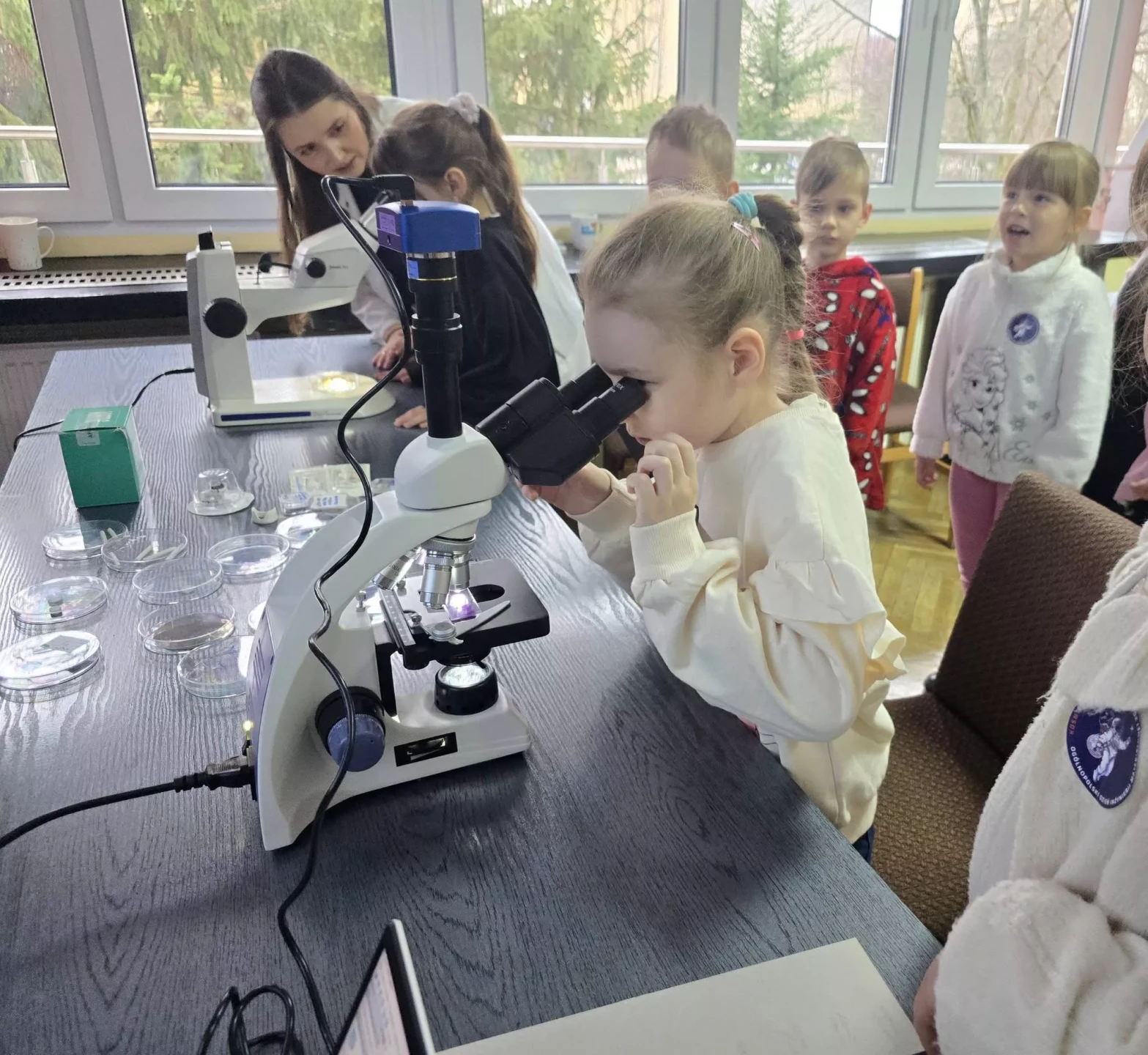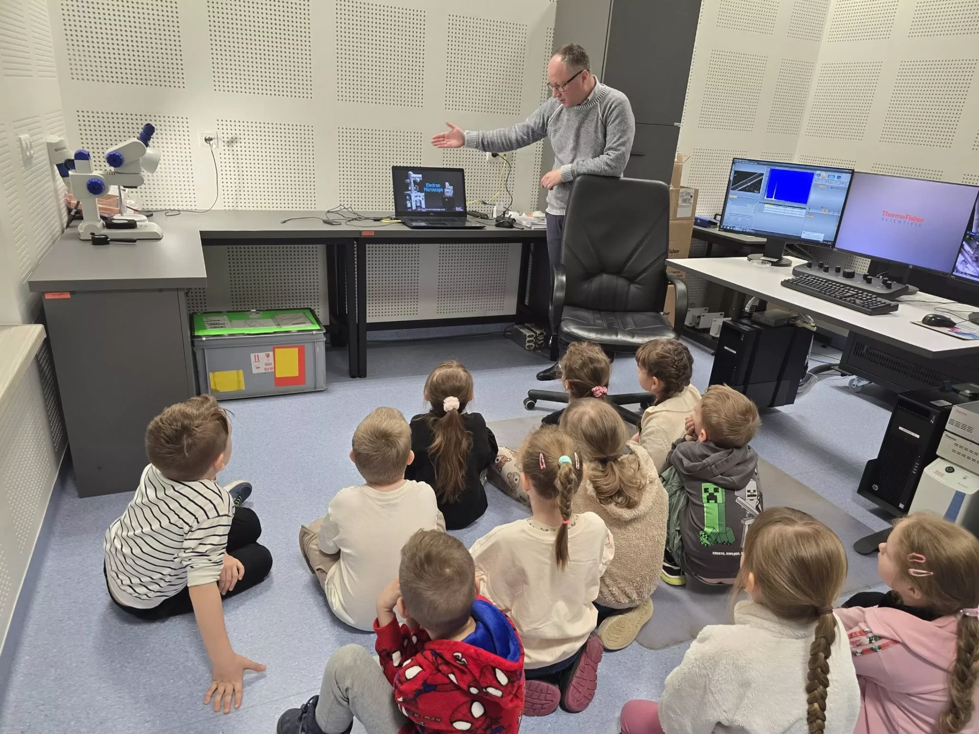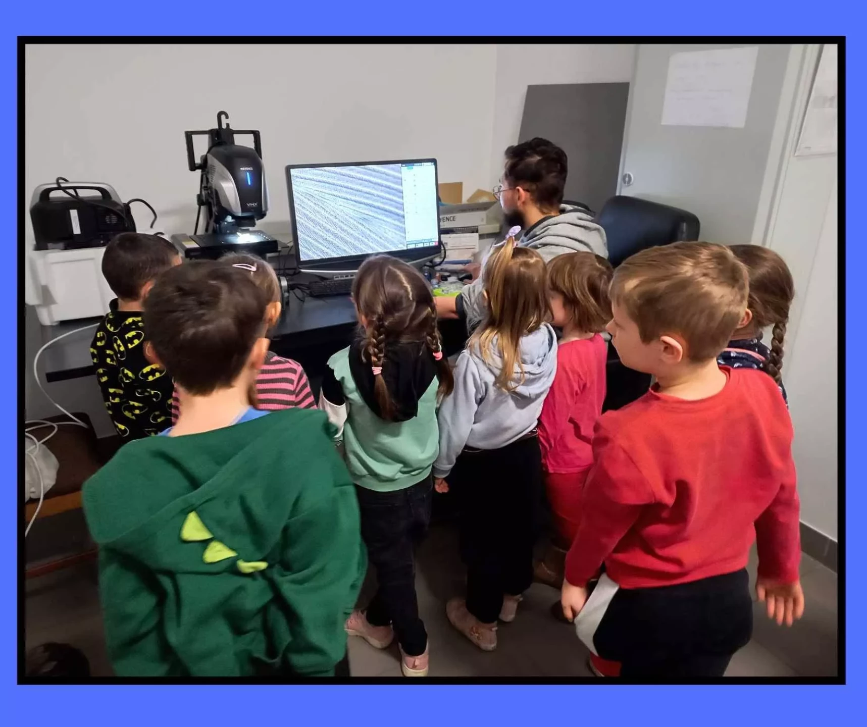Podczas wizyty przedszkolaki zwiedzały również Instytut, poznając różnorodne maszyny oraz obsewrując z bliska duże i małe mikroskopy. Dzieci miały okazję zobaczyć, jak wygląda prawdziwa praca badawcza.✨