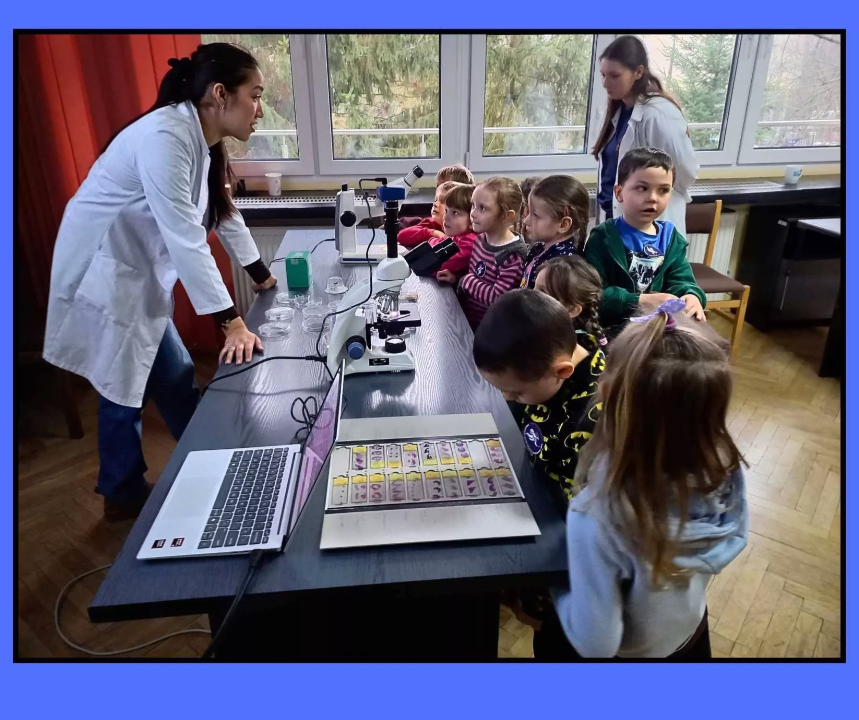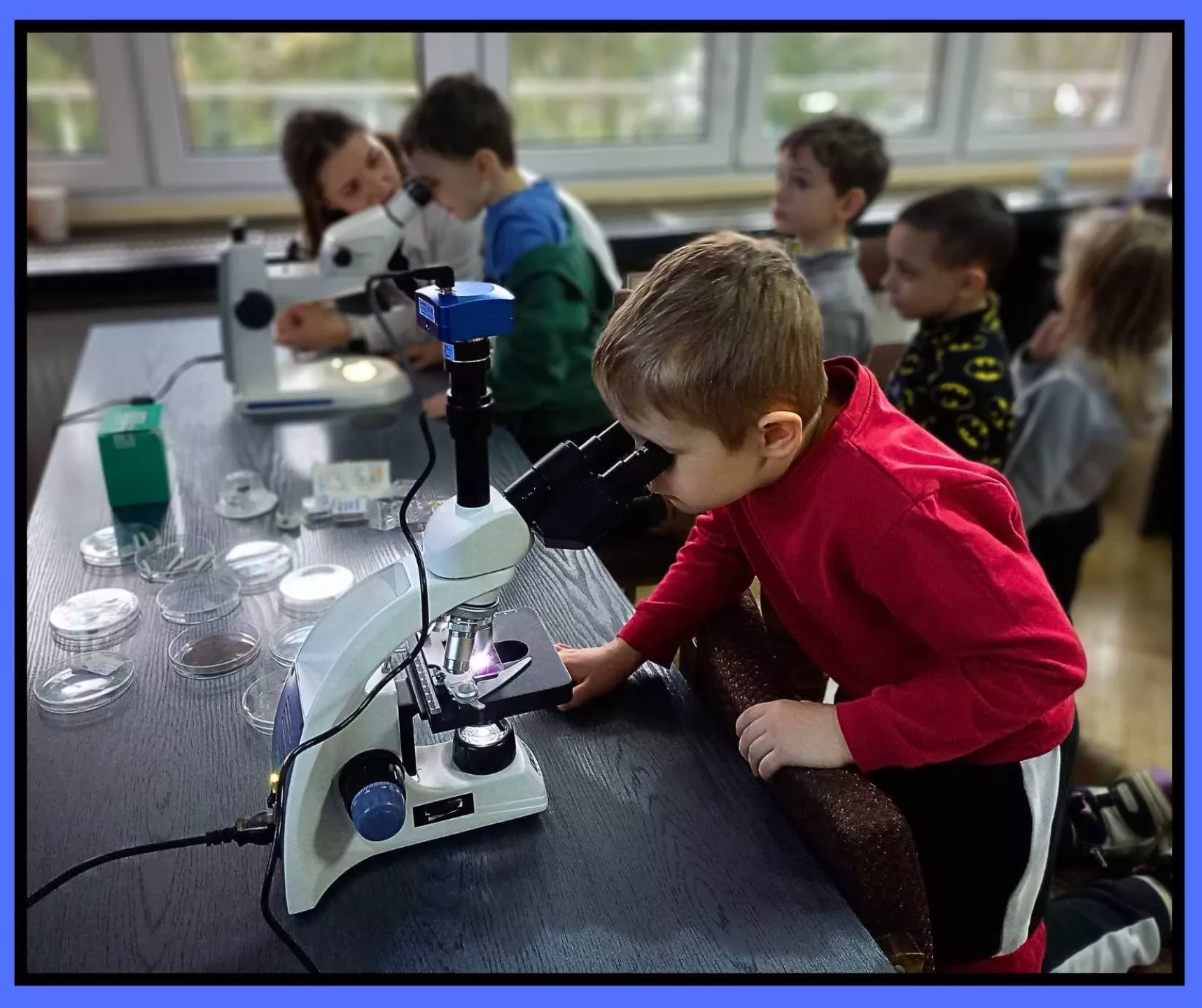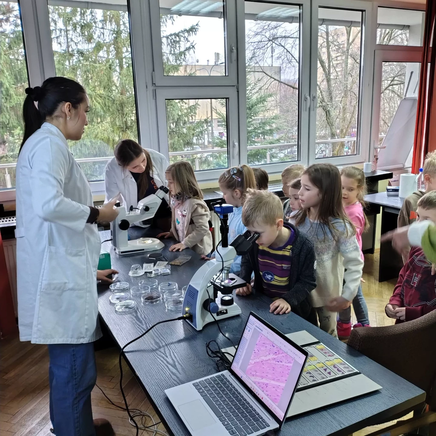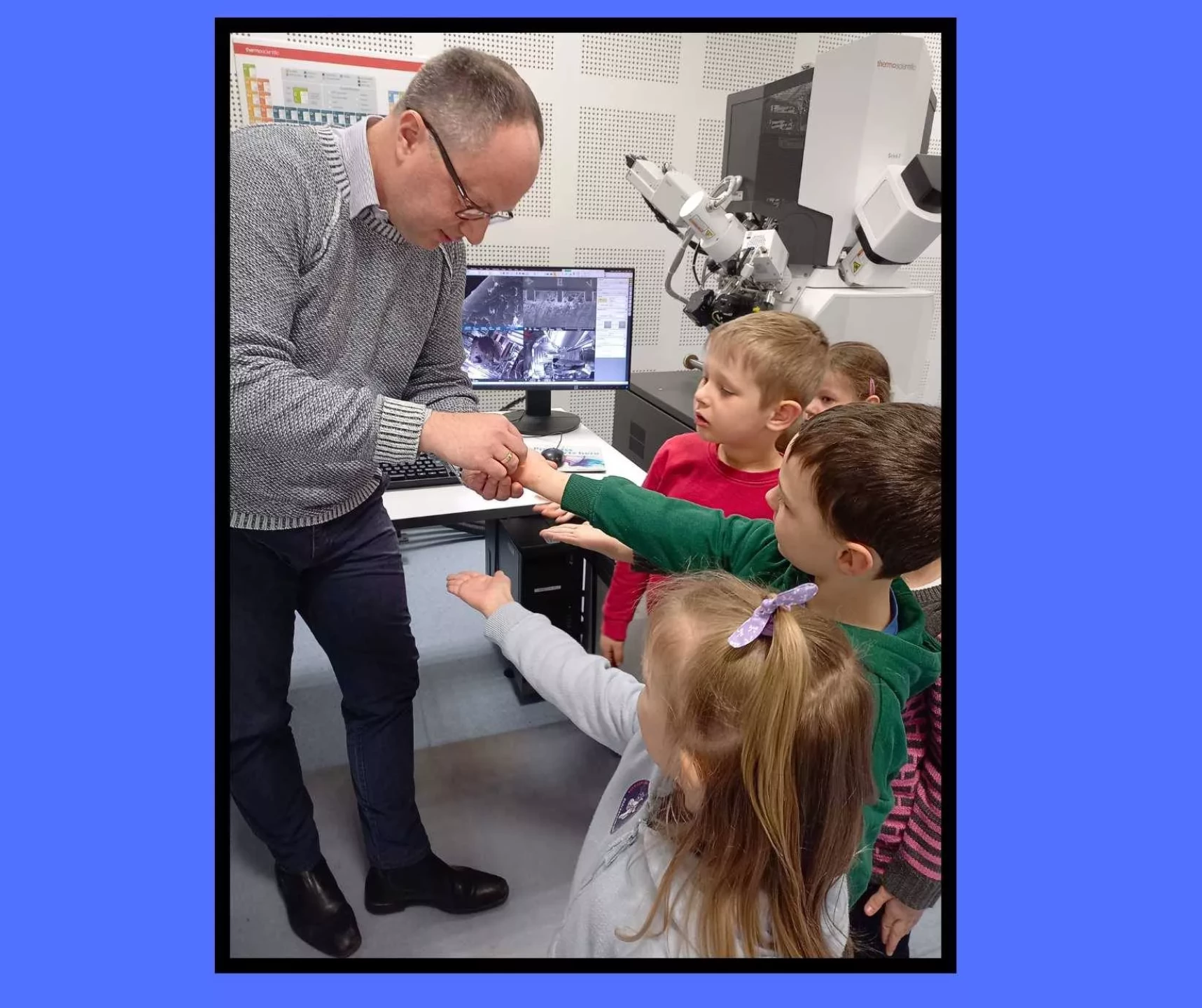 Podczas wizyty przedszkolaki zwiedzały również Instytut, poznając różnorodne maszyny oraz obsewrując z bliska duże i małe mikroskopy. Dzieci miały okazję zobaczyć, jak wygląda prawdziwa praca badawcza.✨